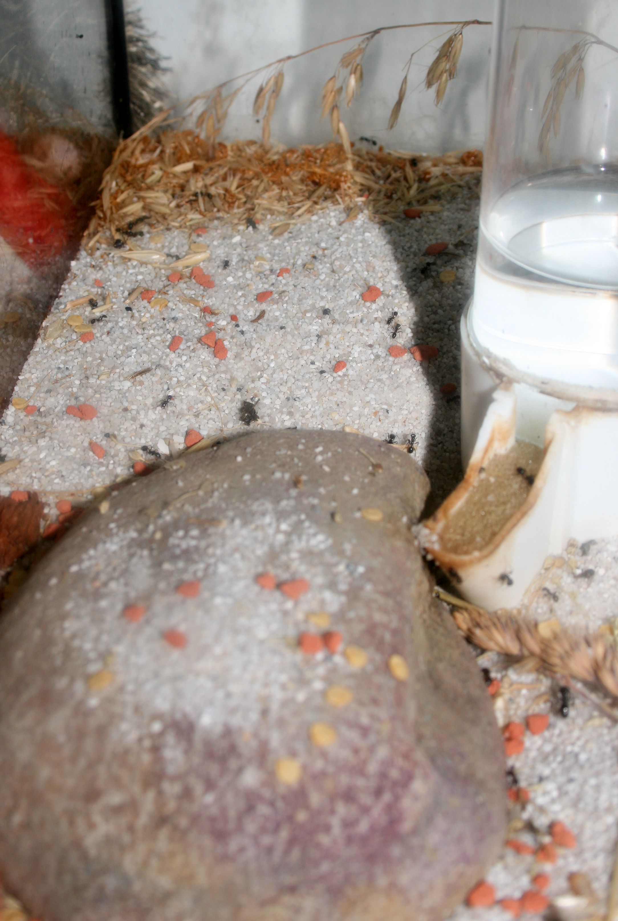 Nö, gibt es nicht, es ist alles beim Alten geblieben. Die Ameisen sitzen schön brav in der Kammer neben dem Wasserreservoir, mitsamt der Springschwänze. Es geht ihnen allem Anschein nach gut.