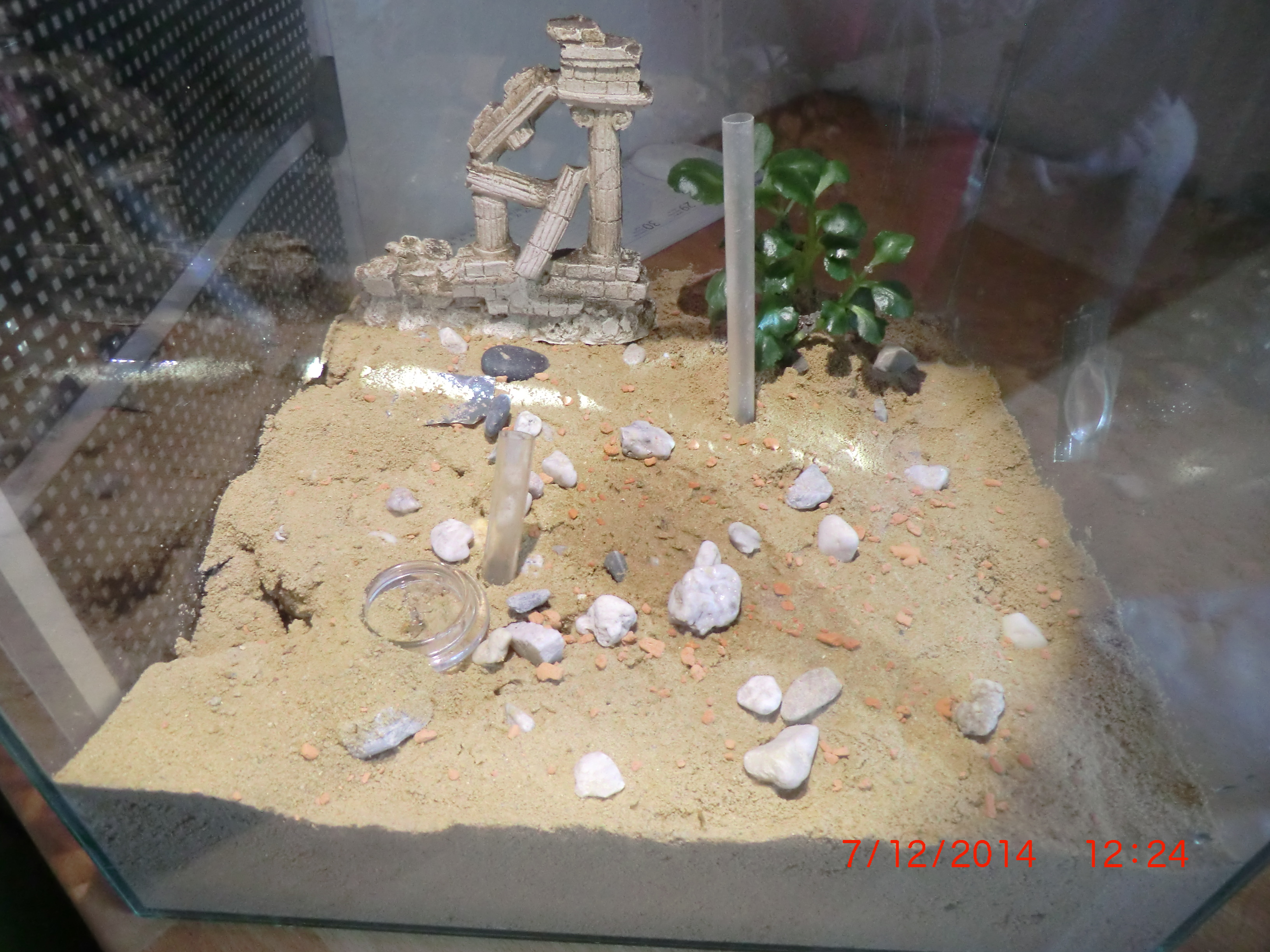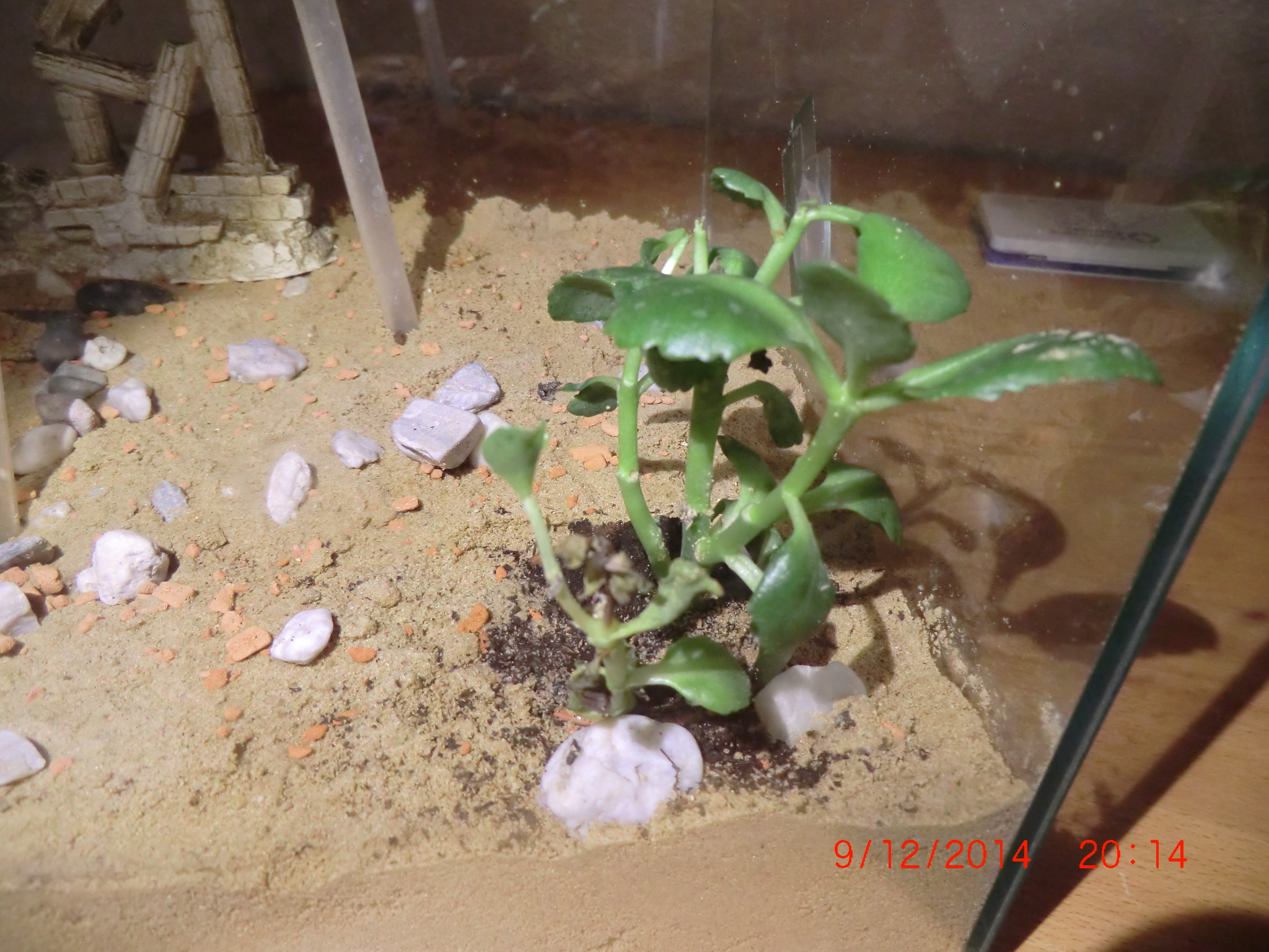 Nun habe ich aber auch gleich eine Frage. Die Pflanze die seit Anfang an im Becken ist sieht seit den letzten Wochen garnicht gut aus. Es kommen keine neuen Blätter und die alten werden schwarz und verschimmeln noch an der Pflanze. Diese muss ich dann immer entfernen. Weiß jmd. was mit ihr los ist? Liegt es an den Pheidole die unter Pflanze ihr Nest haben?
