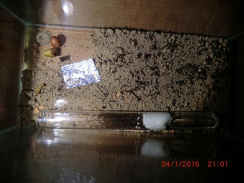 Nun denn, jetzt leben sie in einem Reagenzglas in einer kleinen 20x10 Arena. Ich hoffe sie fangen sich wieder. Mittlerweile wurden wieder Eier gelegt und auch 60 Larven sind vorhanden. Wenn euch noch Tipps einfallen die der Kolonie helfen könnten, teilt sie mir bitte mit. ;)