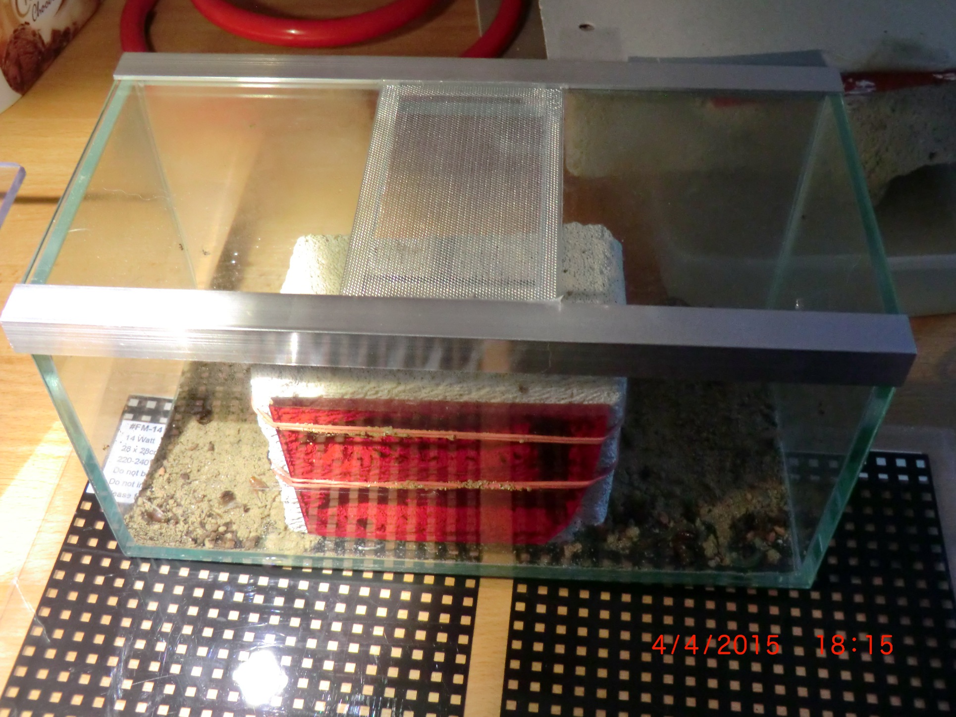 Die Heizmatte habe ich nun unter ihrem Nest positioniert. So haben sie nun kühlere und wärme Plätze im Nest was ihnen scheinbar auch gefällt.