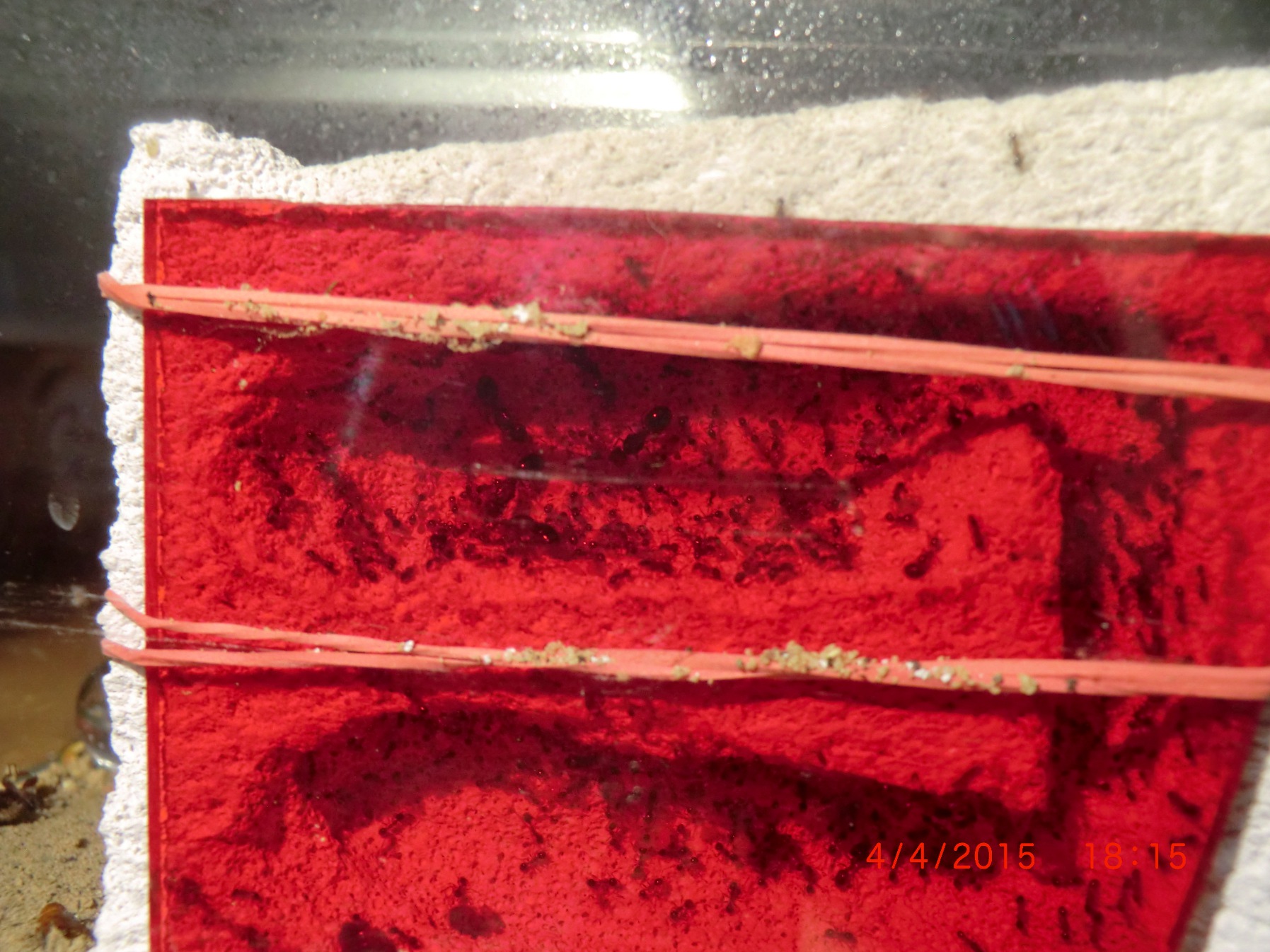 Nun, wie bereits letztes Mal schon angesprochen geht es der Kolonie seit dem Ausgraben um ein vielfaches besser. Sie bekommen nun auch seit letzter Woche wieder große Mengen an Insekten was sich nun auch in ihrer Brutmasse wiederspiegelt. Sie bekommen jetzt täglich einen Mehlkäfer und was sonst noch an Spinnen und Fliegen im Haus herumschwirrt. Auch an Kohlenhydrate gehen sie jetzt gerne ran. Vorallem Ahornsirup scheint ihnen sehr gut zu schmecken.