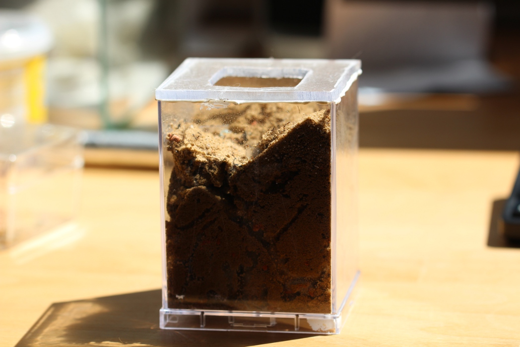 heute mal wieder ein Update von meiner Pheidole Kolonie. Leider gibt es wenig postives zu berichten. Da die Pflanze leider eingegangen ist, musste ich diese entfernen. Leider verblieben die Wurzeln in der Erde, die einige Tage danach anfingen stark zu schimmeln. Da genau dort das Hauptnest lag, musste ich zu einem radikalen Schritt greifen. Ich grub die gesamte Kolonie vorsichtig aus.
