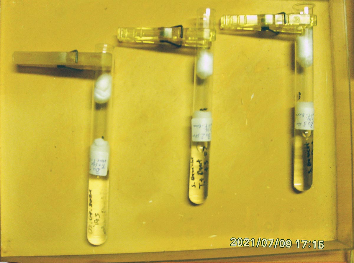 Die drei Reagenzglasnester in Arena mit feuchtem Gipsboden;