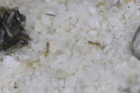 Im Reagenzglas hat sich leider eine Kalkschicht gebildet, die keine besseren Fotos zulässt. Sollte die Gründung gelingen, werde ich die Kolonie in ein kleines Gipsnest umziehen lassen.