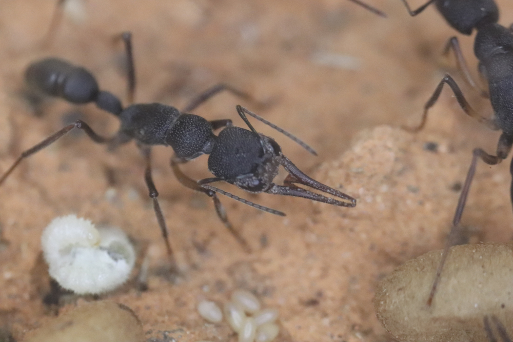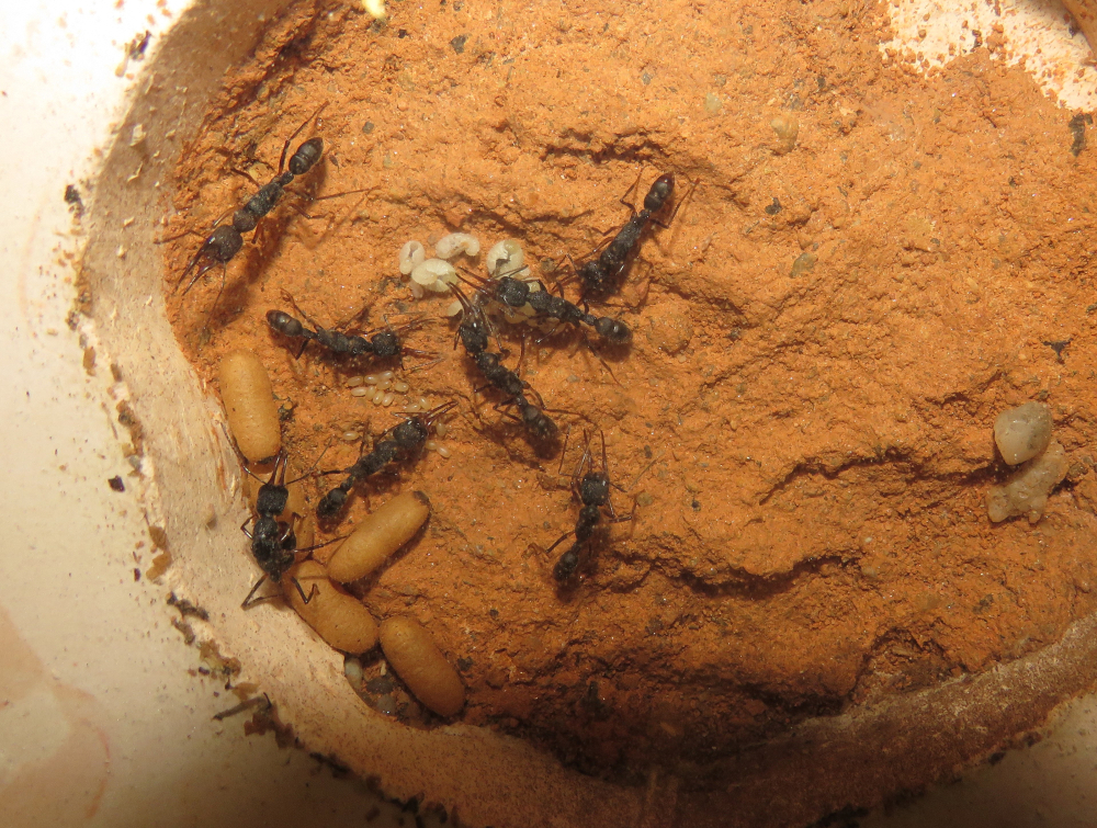 Dazu kommt das attraktive Verhalten dieser Ameisenart. Sie verfügt über ein äusserst gutes Sehvermögen und sie hat ein spektakuläres Jagdverhalten, indem sie sich mit der Gaster wackelnd regelrecht an ihre Beute anschleichen und sogar einige Zentimeter weit springen kann. Die Kolonien bleiben klein und brauchen keine Winterruhe.