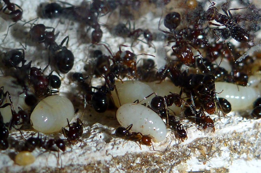 Durch die hohe Sterberate war meine Kolonie auf eine Größe von unter 30 Arbeiterinnen geschrumpft, mittlerweile dürften es aber wieder um die sechzig sein und es ist immernoch reichlich Brut vorhanden.