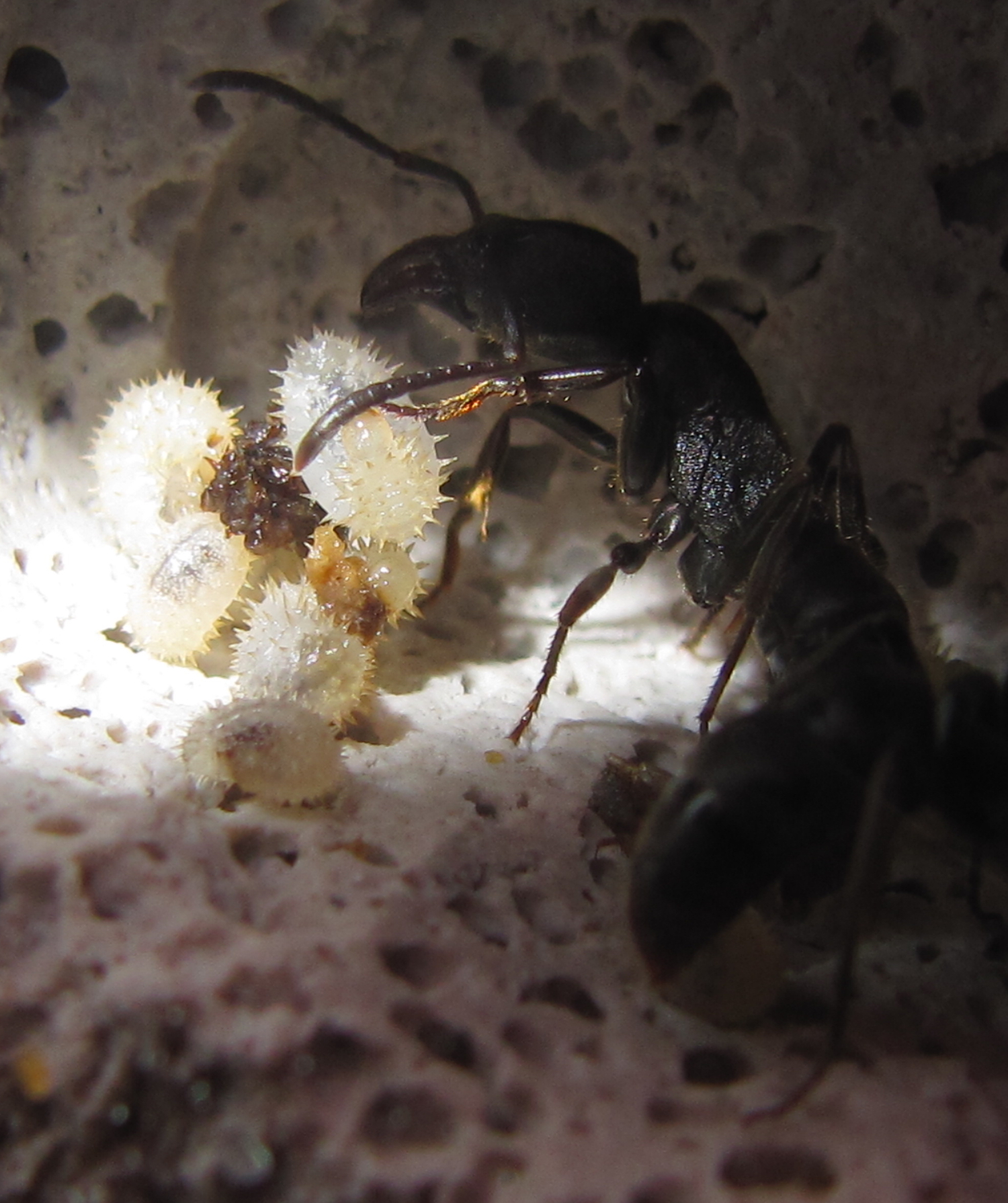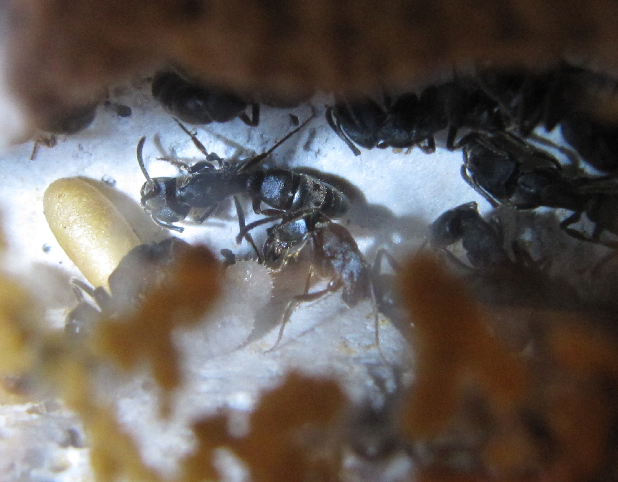 Ich kann nicht sagen, ob es an der neuen Wärmelampe liegt oder ob es Ectomomyrmex astutus allgemein gemütlich nehmen, mit der Nachwuchsaufzucht. Aber ich freue mich so oder so darüber!