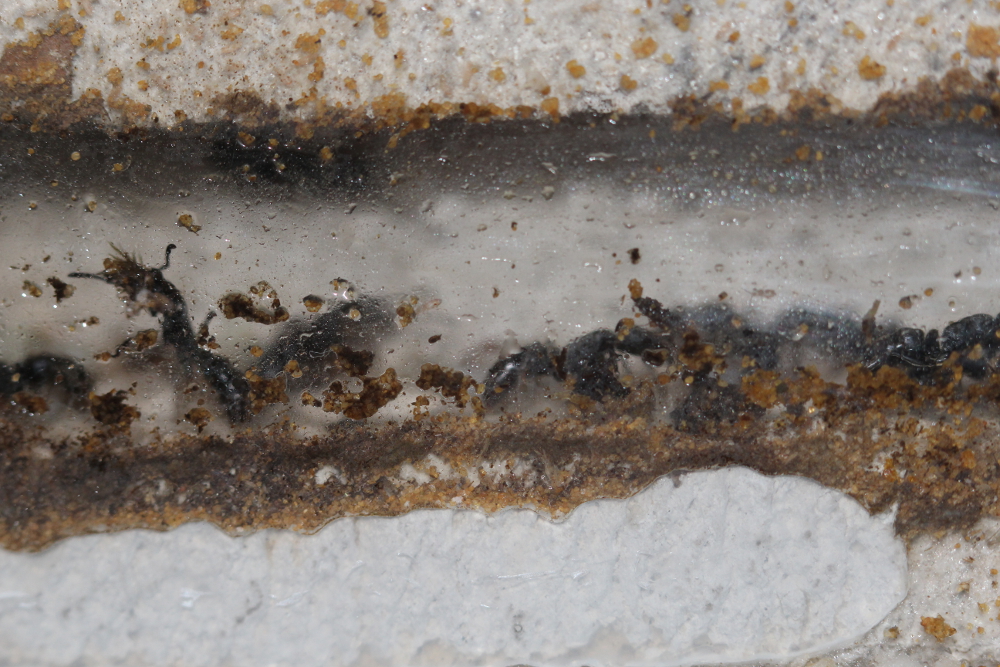 Arbeitinnen unter dem Ytong: Irgendwie ist es den Ameisen gelungen, einen Gang durch die 10 cm dicke Kiesschicht zu graben.