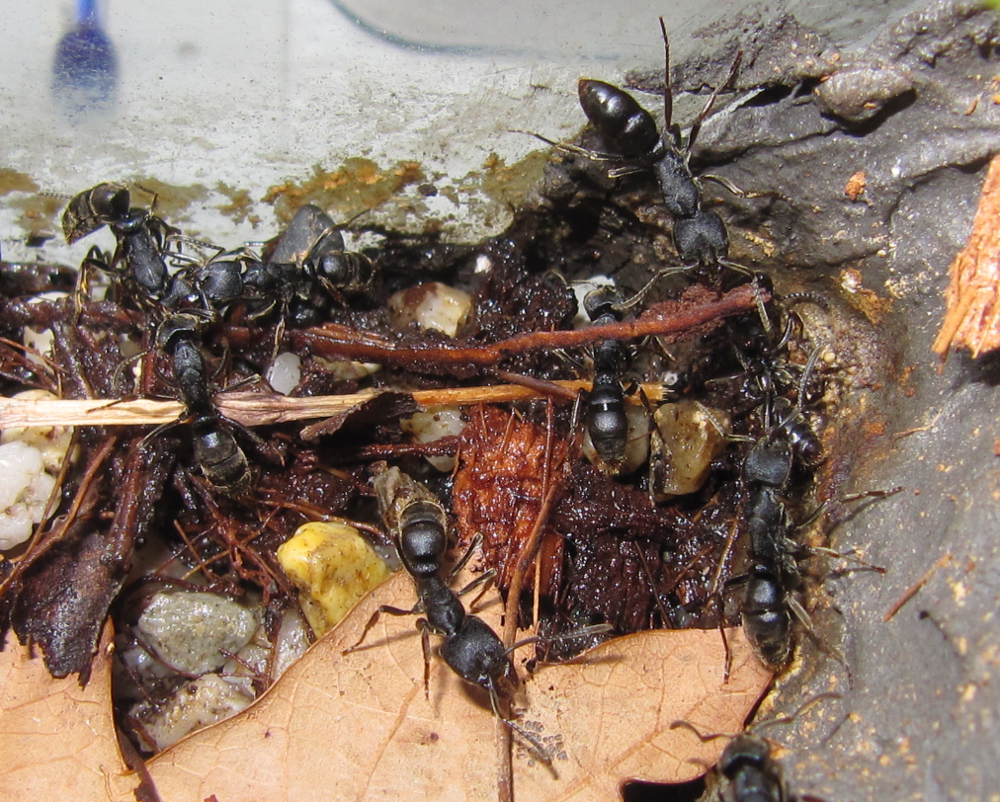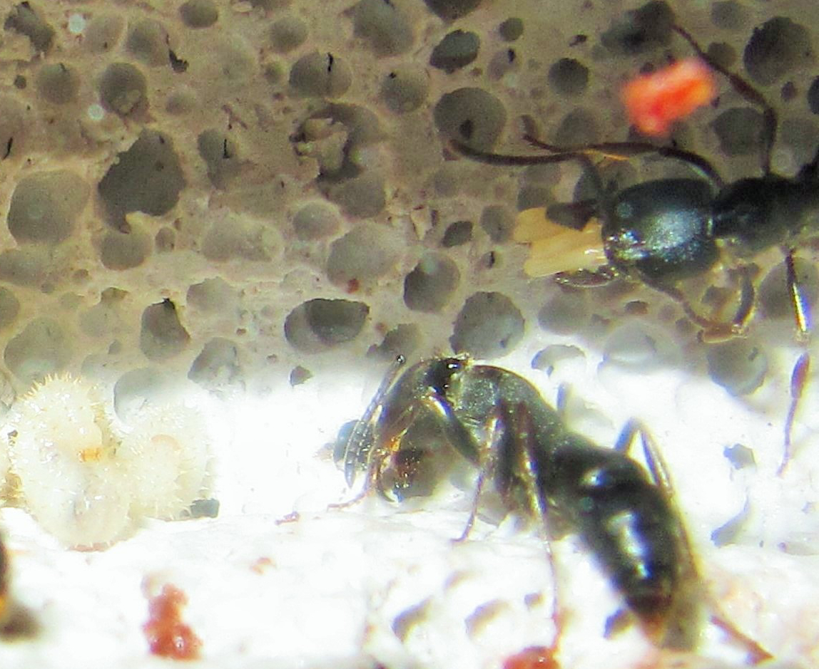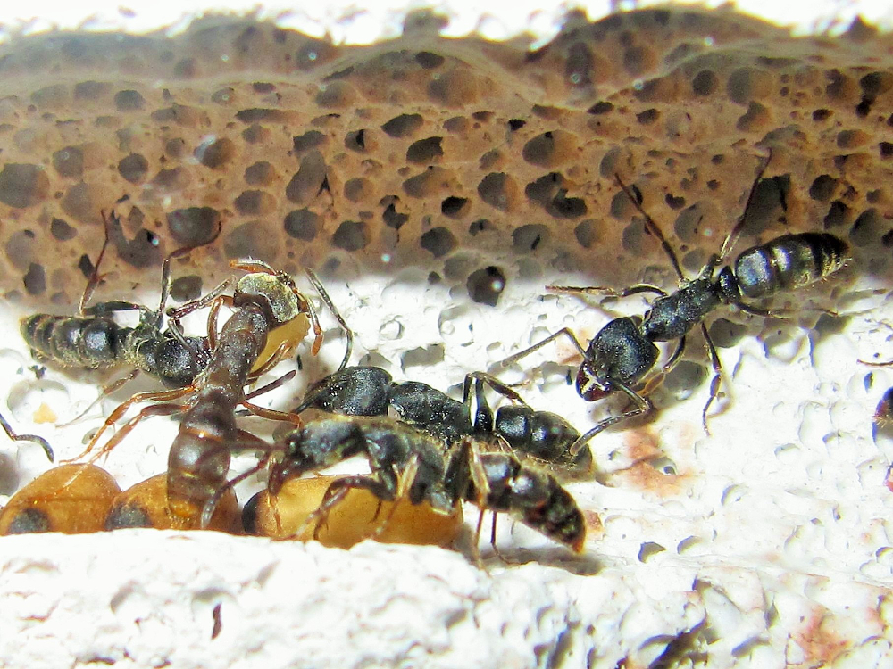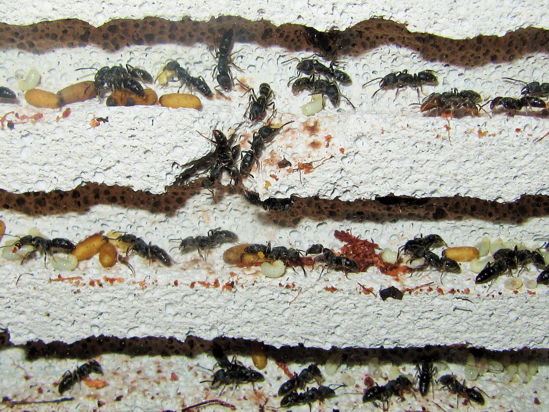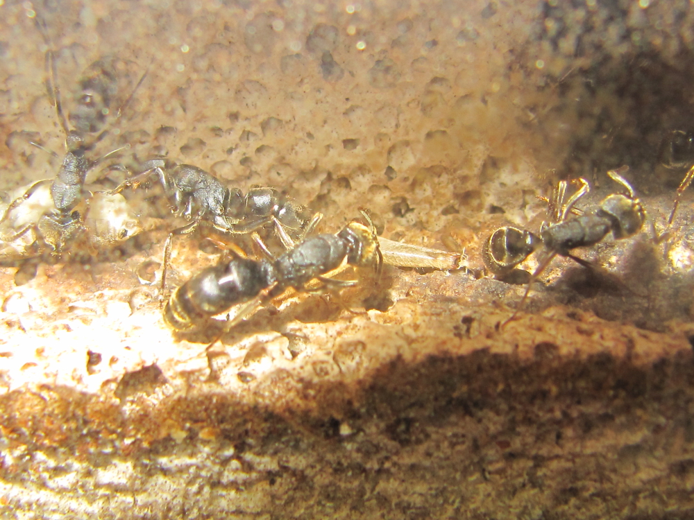 Kurzer Zwischenbericht: Der Kolonie geht es gut. Allerdings sind viele Arbeiterinnen gestorben. Ich vermute den Grund in der Kurzlebigkeit der Arbeiterinnen. An den Haltungsbedingungen habe ich jedenfalls nichts geändert und die Kolonie hat massig Brut in allen Stadien. Die Schwankungen in der Kolonienzusammensetzung sind bei der Art schon enorm.