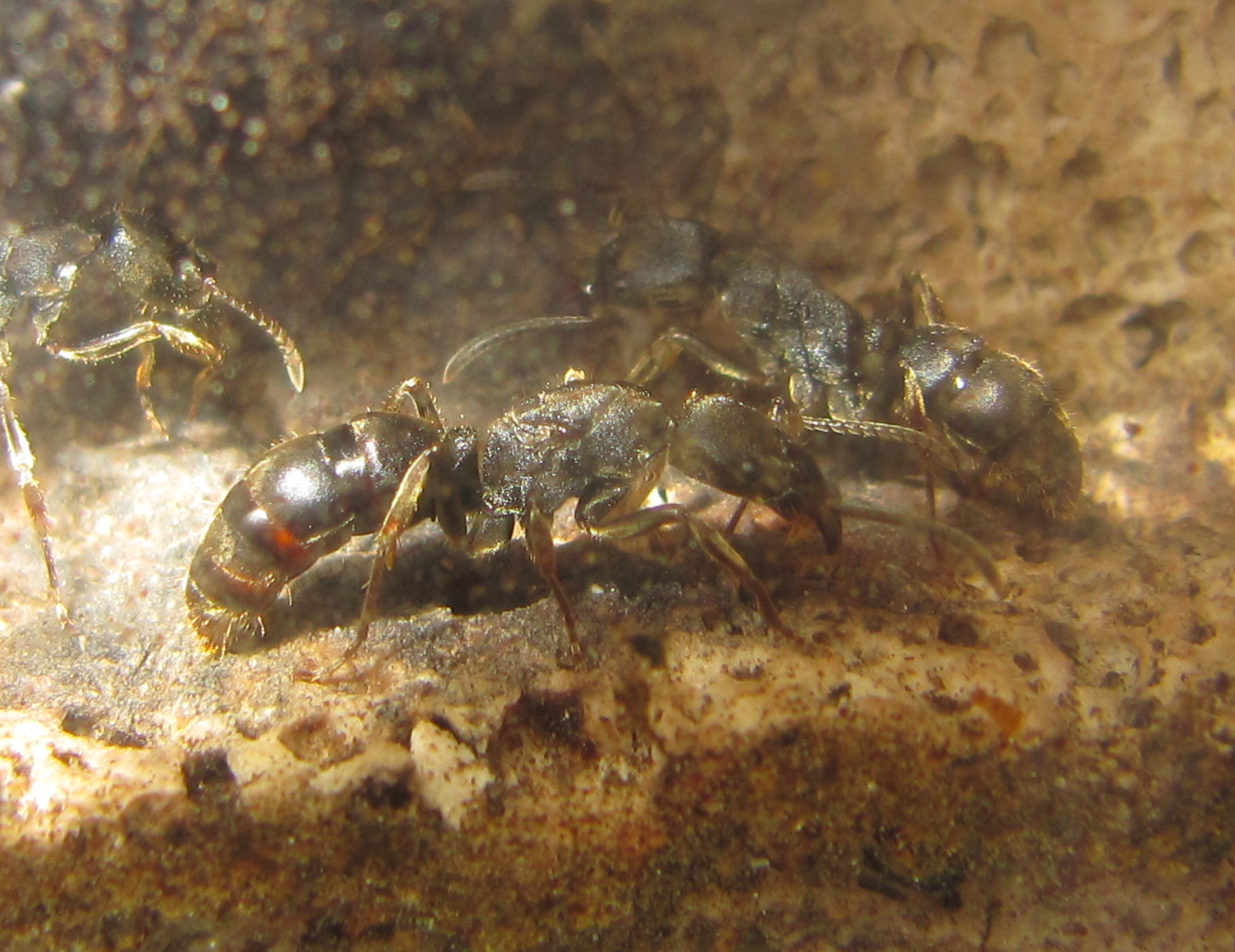Allerdings kommt es in letzter Zeit zu seltsamen Zwischenfällen, bei denen sich Arbeiterinnen bekämpfen und auch töten. Wodurch es soweit kommt, kann ich bislang nicht sagen. Ich konnte bisher 3 Fälle ausserhalb des Nestes beobachten. Die Ameisen zu trennen nützte nichts, die unterlegenen Tiere wurden erneut angegriffen.