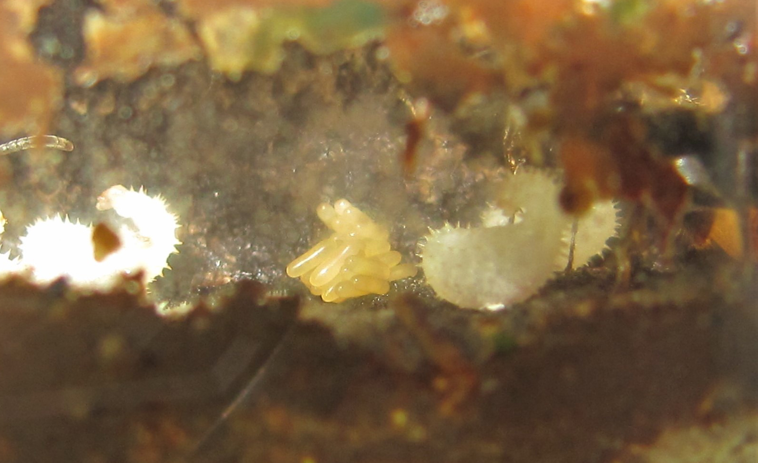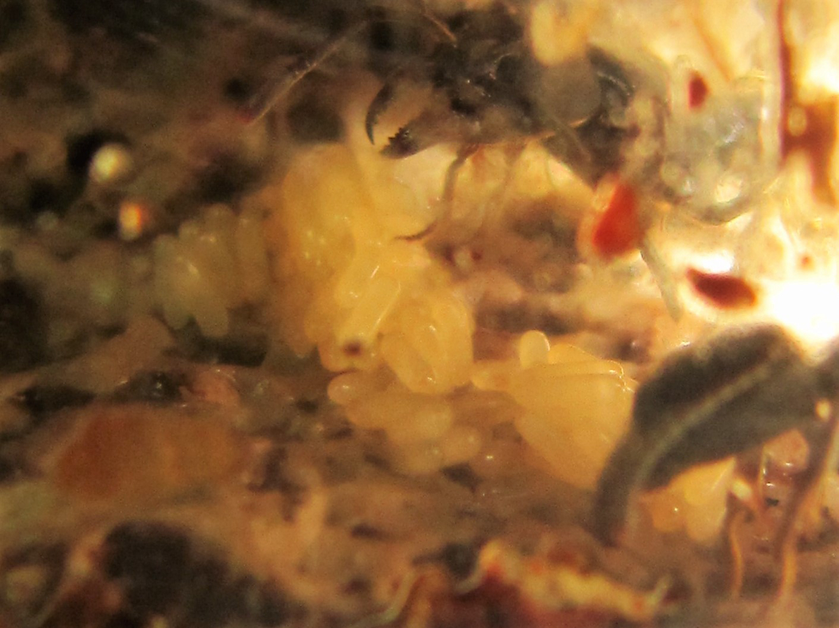 Es gibt wieder Eier. Diesmal ist das Paket etwa einen Monat früher aufgetaucht, als im vergangenen Jahr. Aber im 6. Haltungsjahr lässt sich sicher sagen: Die Art hält eine recht genaue Diapause von 2 bis 3 Monaten ein - bei mir wurde sie zudem stehts im Winter (bzw. zwischen Ende Oktober und Februar) eingelegt.