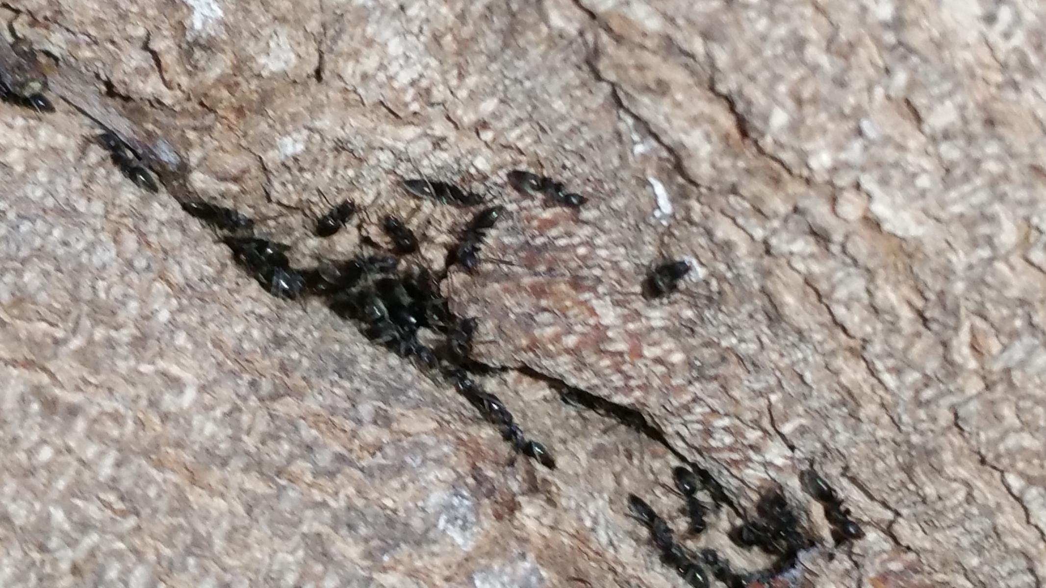 Die letzte Art war, vor allem im Großen Haus (was mit über 20° C am wärmsten war), die dominante. Sie war quasi an den meisten großen Bäumen anzutreffen und hat dort Straßen gebildet, teilweise konnte man sie dabei beobachten wie sie Läuse bewachten und wie sie in Gruppen in Astgabeln saßen (siehe Fotos). Kann man dazu was sagen? Diese waren auch ein wenig größer als die anderen. Schätze in etwa so wie Lasius niger.