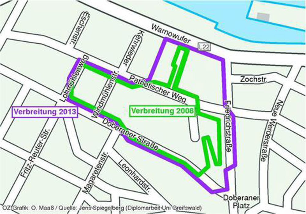 Das heißt zumindest, dass die Art bis 2013 Erwähnung fand, und z. B. in Rostock ab 2008 beobachtet wurde. Das ist nicht gerade die wärmste Ecke Deutschlands.