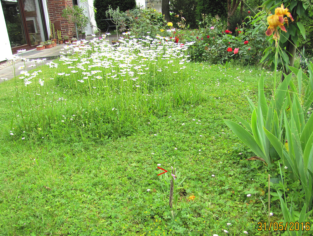 Im Vorgarten, wo 2013 die erste Bienenragwurz spontan auftrat, stehen dieses Jahr gegen 40 Pflanzen, von denen über 25 nun