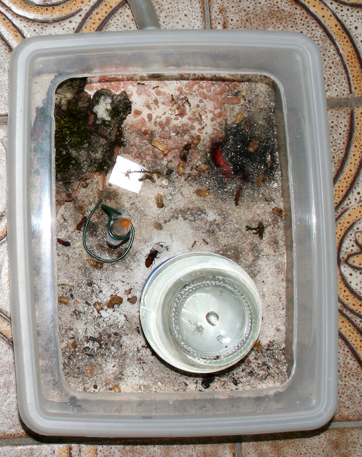 Bei den Myrmica im Erdnest erfreuen sich die Asseln bester Laune, daher hab ich ein paar auch auf das andere Volk aufgeteilt. Mit genügend Versteckmöglichkeiten ist das auch kein Problem, nur in die anderen Behälter sollte man sie vielleicht nicht so ohne Quarantäne werfen, zumindest nicht, solange ihnen noch der fremde Geruch anhaftet.