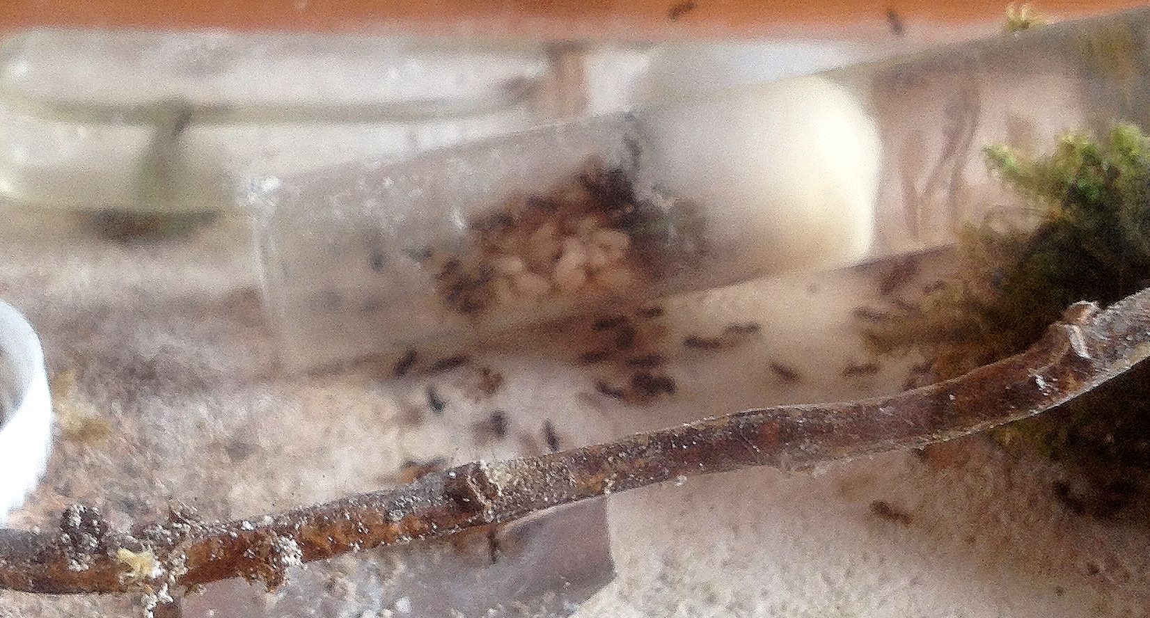 Ein kleines Update zu meiner ältesten Kolonie hier, die Myrmica rubra mit dem externen Gipsnest, (Mr1)