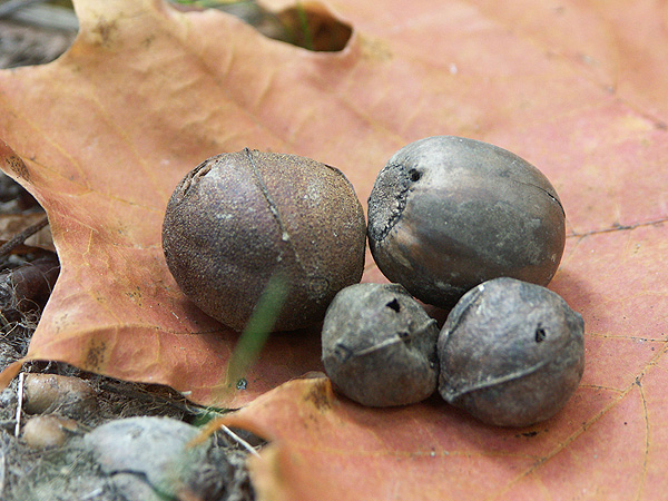 Bewohnte Eicheln bzw. Hickory-Nüsse