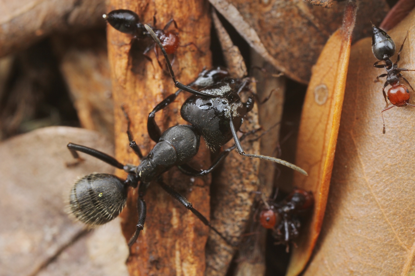 Hauptdarsteller in dieser Geschichte wird wieder einmal Camponotus vagus , ein sehr imposanter Darsteller. Nicht umsonst haben wir uns seit langem mit dieser Art näher befasst, z. T. auch hier im Forum: viewtopic.php?f=46&t=532&p=11669&hilit=Camponotus+vagus#p11669, viewtopic.php?f=48&t=370&p=8832&hilit=Camponotus+vagus#p8832, viewtopic.php?f=46&t=1102&p=8700&hilit=Camponotus+vagus#p8700, viewtopic.php?f=46&t=1094&p=8597&hilit=Camponotus+vagus#p8597, viewtopic.php?f=46&t=1018&p=7864&hilit=Camponotus+vagus#p7864, viewtopic.php?f=46&t=980&p=7299&hilit=Camponotus+vagus#p7299, viewtopic.php?f=50&t=79&p=994&hilit=Camponotus+vagus#p994 (v. Barristan).