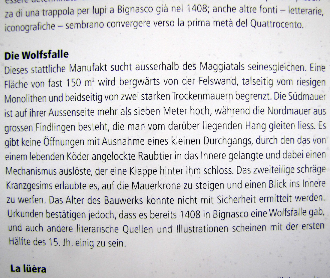 Das Ganze befindet sich im Val Maggia, am Hang direkt bei dem Ort Bignasco. Die recht breite Talsohle war damals wohl nicht besiedelbar,