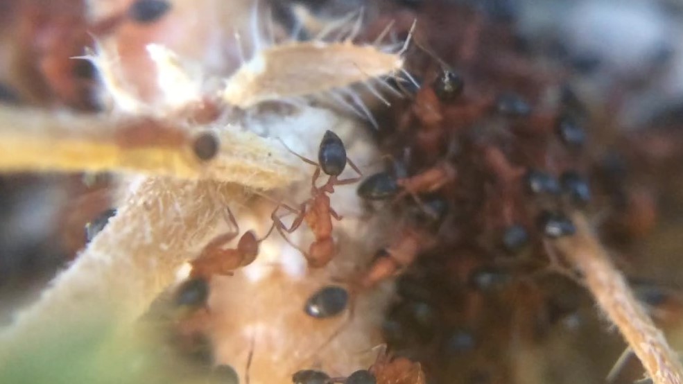 3. Hier handelt es sich um kleine rot-schwarze Ameisen. Bessere Bilder, als die Folgenden, habe ich nicht.