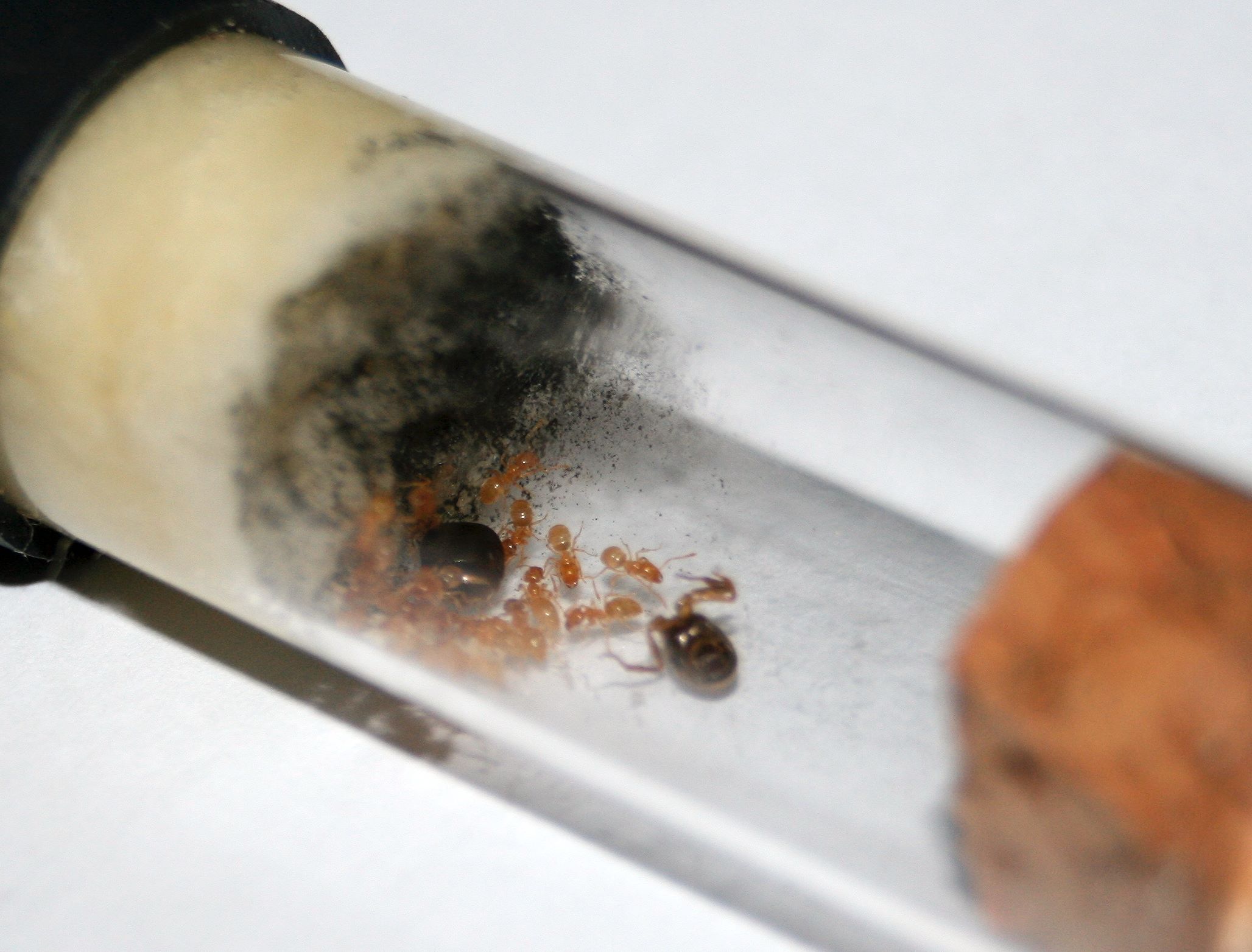 Es ist immer wieder erstaunlich, was die Minimalisten wie Temnothorax so auf die Reihe bringen. Bis dato ca Fliegen und sieben stecknadelgroße Tröpfchen Sirup verfüttert und die kleinen füllen damit ihre Nester mit Geschlechtstierlarven an.