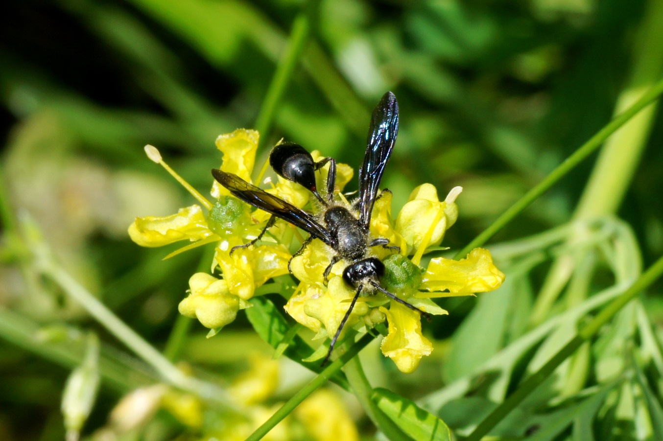 Heute, etwa 15:00 eine schöne Isodontia mexicana auf den Blüten einer Pastinakpflanze (Pastinaca sp.). Heiter bei 27°C, 40% LF. Fundort: Klagenfurt/Kärnten 447 m.