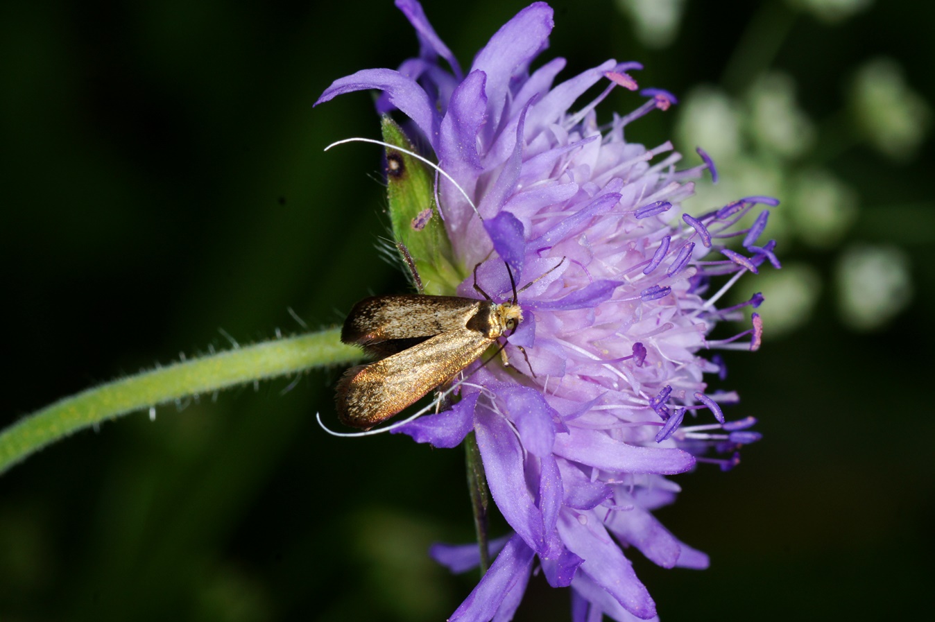 Ein wunderschönes, golden schimmerndes Insekt: Nemophora metallica, die Skabiosen-Langhornmotte.