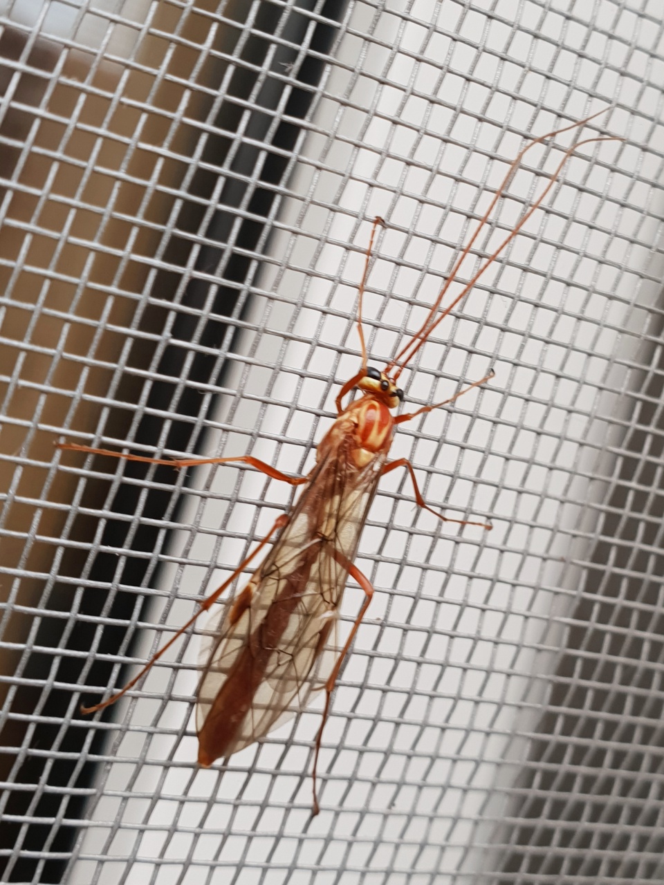 Bei weiteren Beutetieren schiebt es mittels seines Legestachels je ein einzelnes Ei zwischen die Tergite. Die Beute erholt sich rasch und setzt seine Nahrungsaufnahme fort (es sind Pflanzensauger). Die Wespenlarve entwickelt sich anfangs im Hinterleib des Wirtstieres, aber nach etwa fünf Tagen arbeitet sie sich zwischen zwei Segmenten nach außen. Der Kopf der Wespenlarve bleibt innerhalb des weiterhin lebenden Wirtes, während sich aus Häutungsresten außen eine sackartige, Struktur entwickelt, die den Rest der Larve birgt. Zwei oder drei Wochen später bricht die Larve aus dem Sack hervor, frisst kurz an ihrem Wirt und verlässt dessen vertrocknende Hülle.