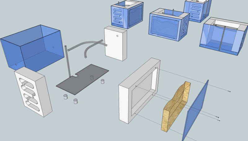 Einfache Eigenkonstruktion bei der ich lediglich ein Stück Watte zwischen Bodenplatte und Farmkörper gelegt habe bevor ich beides mit Silikon verklebte und an der Stelle an der die Watte raus schaut, ist der Wassertank