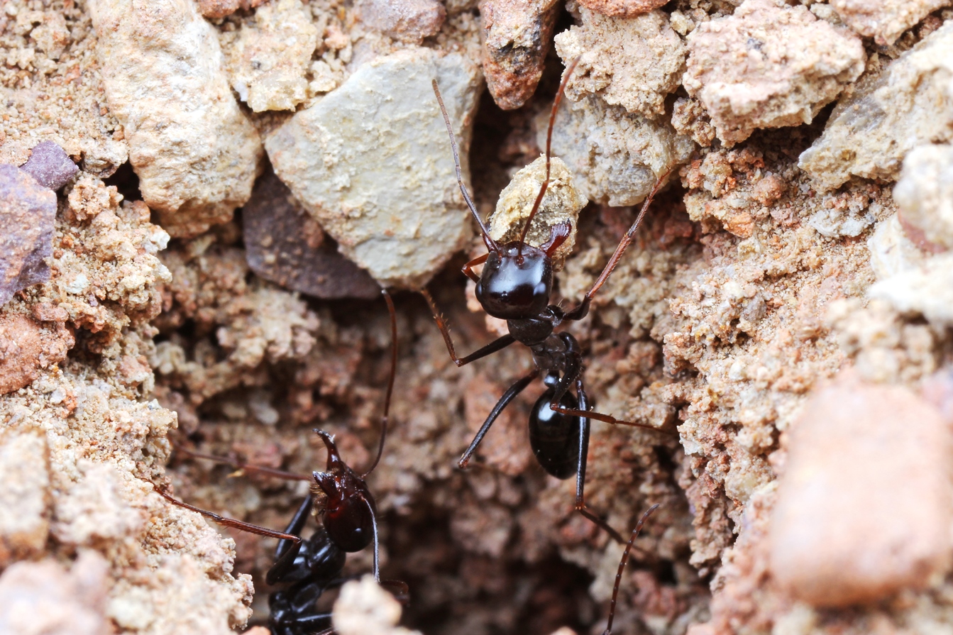 Dorsale Ansicht. Lange Beine ermöglichen schnelles Laufen und den Körper mehr vom Boden abzuheben. Die Gaster wird hochgestellt