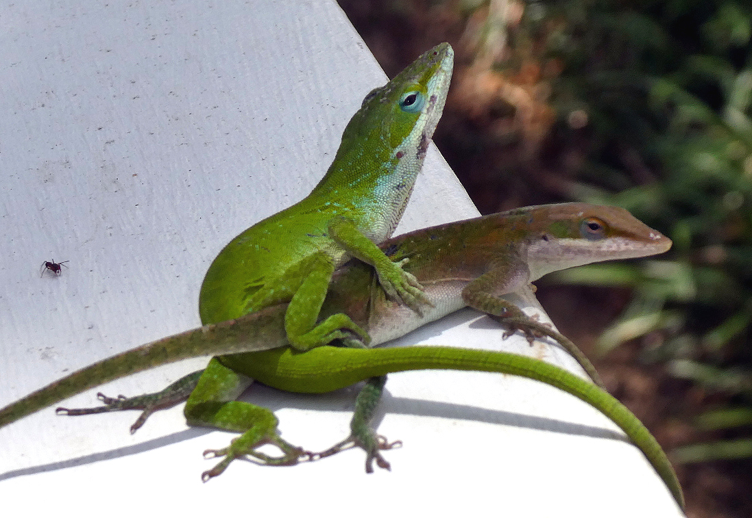 Ethologisch interessierte Ameise studiert Echsenverhalten auf der Veranda