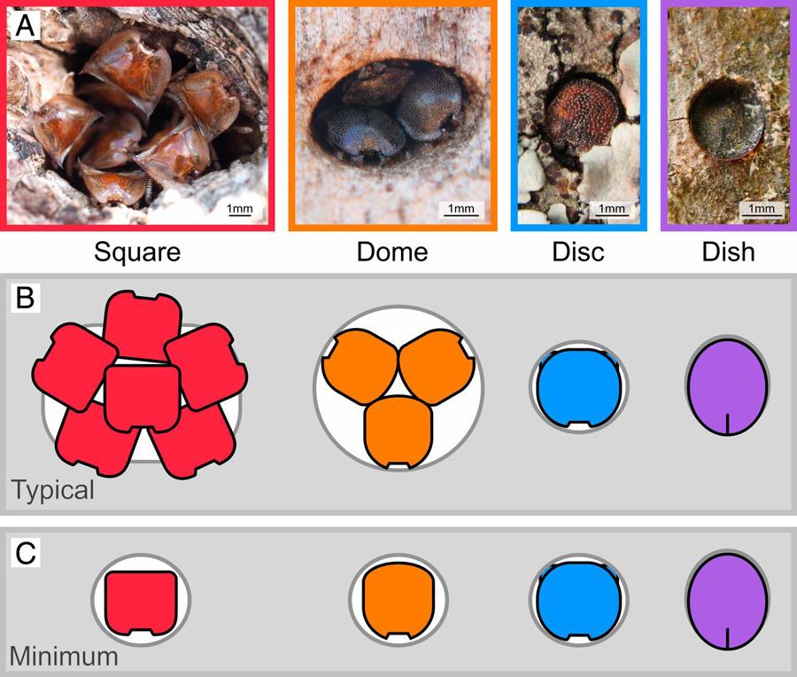 Diese diversen Anpassungen und Verteidigungsstrategien wurden in verschiedenen Verwandtschaftsgruppen innerhalb der Gattung Cephalotes wiederholt entwickelt, können bei einzelnen Arten(-gruppen) wieder reduziert worden sein, und die Kopfgröße ist nicht mit der speziellen Form und dem Verhalten gekoppelt. Daten aus rund 100 Arten wurden verarbeitet.