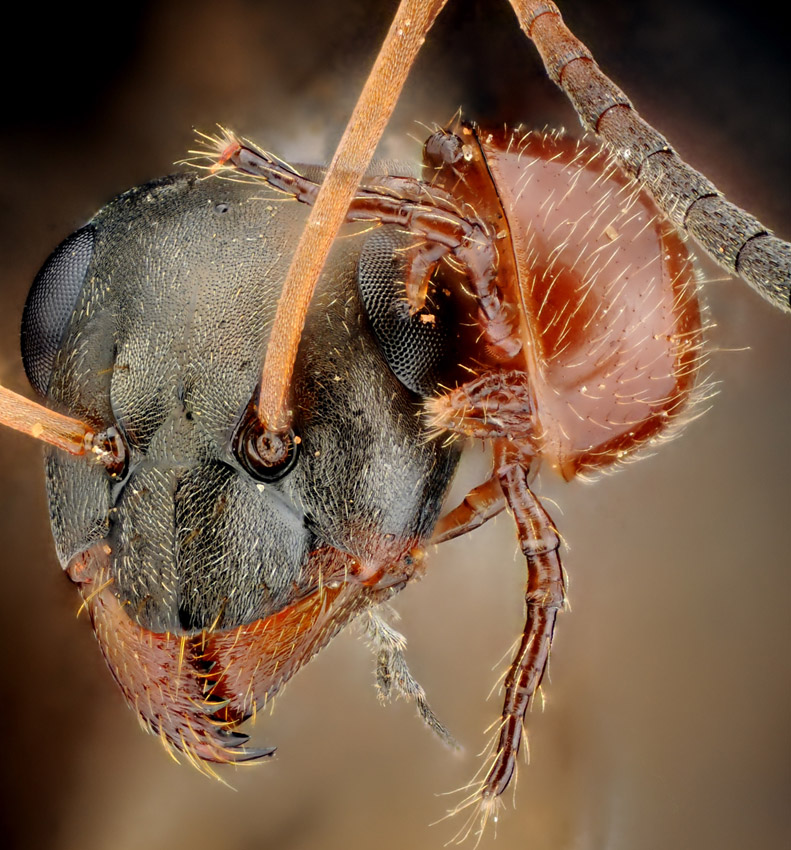 Auf einer toten Ameise ist er sehr stark.