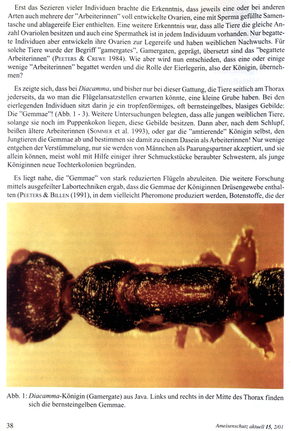 Wir haben viele Nester der Diacamma ausgegraben, haben deren begattete Weibchen („Gamergate“, mit „Gemmae“) identifiziert und seziert.