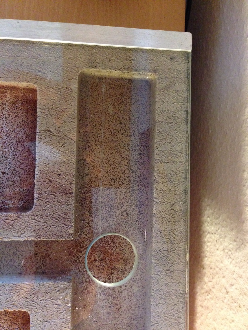 Nun zu etwas an dem ich gerade 'trainiere'. Früher oder später werden die Kleinen sicher ins große Nest ziehen. Aktuell weiß ich aber nicht wie oft ich dieses befeuchten soll. Ein lästiges Thema ich weiß. An Tag 4 habe ich es mal mit viel probiert, aber irgendwie sieht man nie, dass einzelene Kammern 'feucht' sind. Nur im Radius von 2cm des Tankes kann man feuchte Stellen erkennen. Der Nachteil an der Kante (siehe Bild) wurde der Rand schon schwarz...und so soll es ja auch nicht sein..