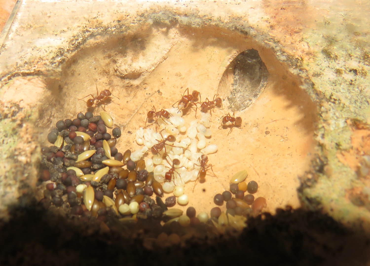 Pogonomyrmex barbatus Körner und Brut1.JPG