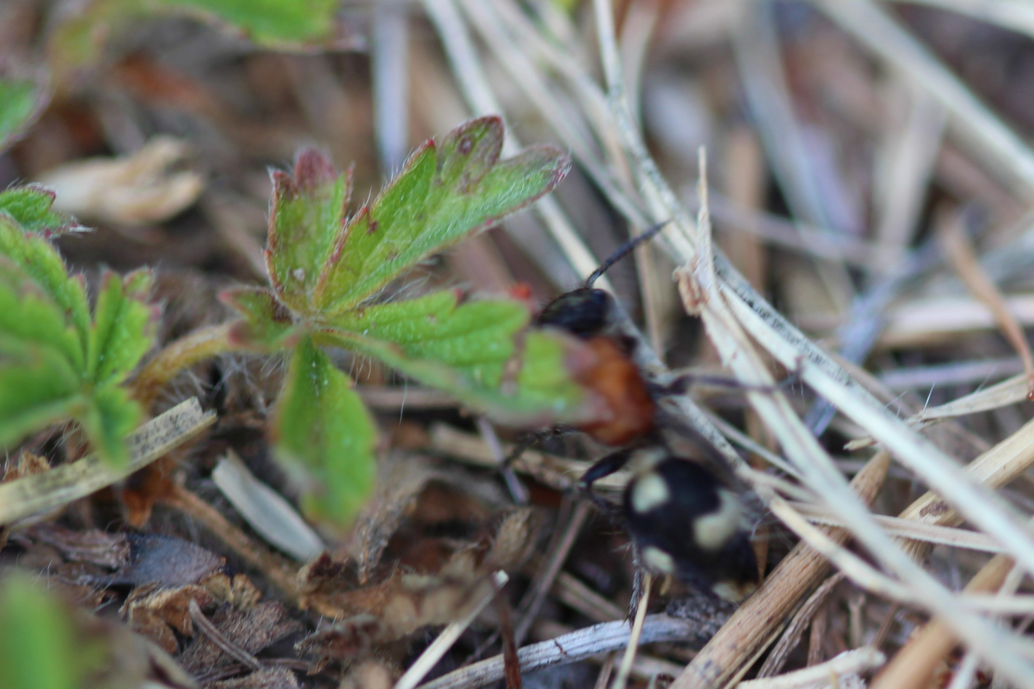 Die Färbung ist eigentlich unverwechselbar. Das Tier dürfte so etwas über einen cm groß gewesen sein (?). Ich habe sie im Wallis auf Exkursionen öfter zeigen können, und als Mutilla europaea vorgestellt, Parasit bei Hummeln. Die Männchen sind geflügelt (sieht man selten), die Weibchen stechen ziemlich böse. Wikipedis schreibt von zwei weiteren, schwer unterscheidbaren Arten: https://de.wikipedia.org/wiki/Mutilla_europaea