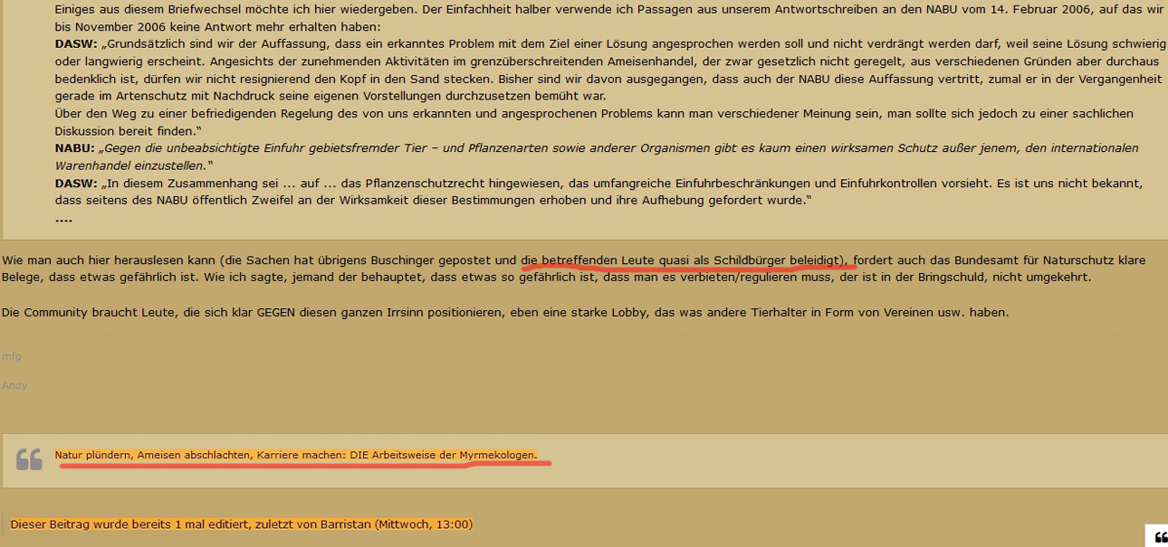 Der obere Teil zitiert aus meinem ironischen Artikel in der „Ameisenschutz aktuell“ vom Dez. 2006: „Ameisen-Handel und Naturschutz in der BR Schilda“, nachlesbar hier. Den Artikel würde ich heute noch ebenso formulieren! :D