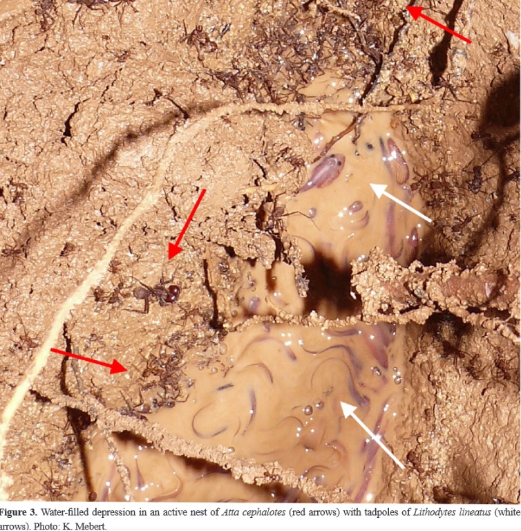 Use of an active nest of the leaf cutter ant Atta cephalotes (Hymenoptera: Formicidae) as a breeding site of Lithodytes lineatus (Anura: Leptodactylidae). Andreas Schlüter, Petra Löttker and Konrad Mebert.