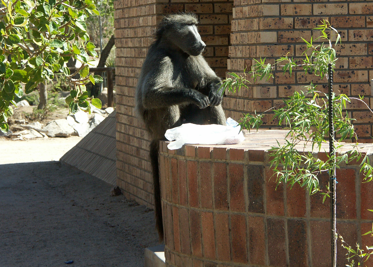Dieser Bärenpavian hat uns bei den Augrabis Falls in und an unserem Häuschen die Ehre gegeben.