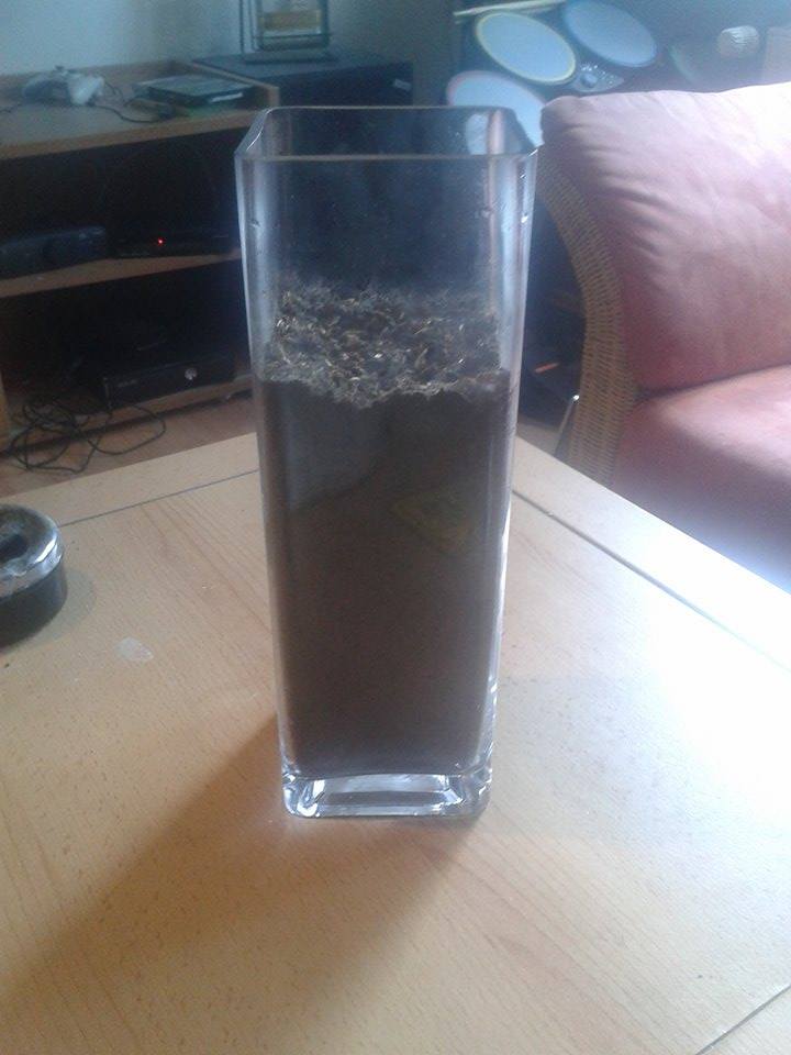 Somit habe ich einfach auf der ersten noch sehr Nassen braunen schicht, einen weiß Schicht Sand-Lehm Mischung getan und die Arena hin und her geschüttelt.