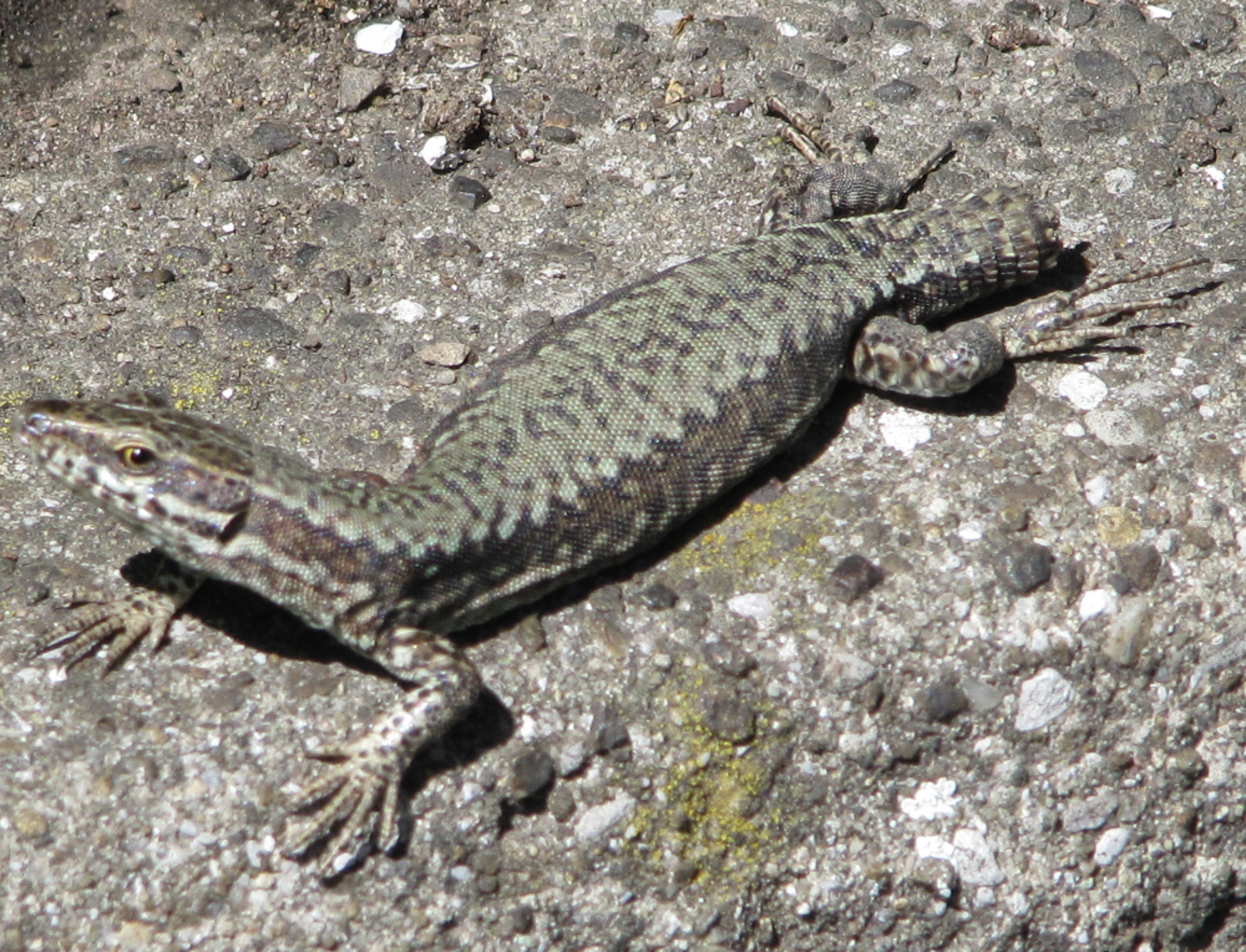 Trailandstreet lag mit "Eidechse" schon richtig! Merkur hat dann voll ins Schwarze getroffen! Das ist eine Mauereidechse aus der Population am Loryplatz, mitten in Bern. Die Tiere leben dort an einer langen und hohen, teilweise überwachsenen Mauer. Oberhalb fliesst der Stadtbach - zwar kanalisiert aber offen. Vor den achtlos vorbeigehenden Menschen zeigen sie keine Scheu. Bis auf die vielen Katzen finden die Eidechsen offenbar ideale Bedingungen vor - und gegen die Stubentieger sind sie, wie das Bild zeigt - evolutionär gewappnet.