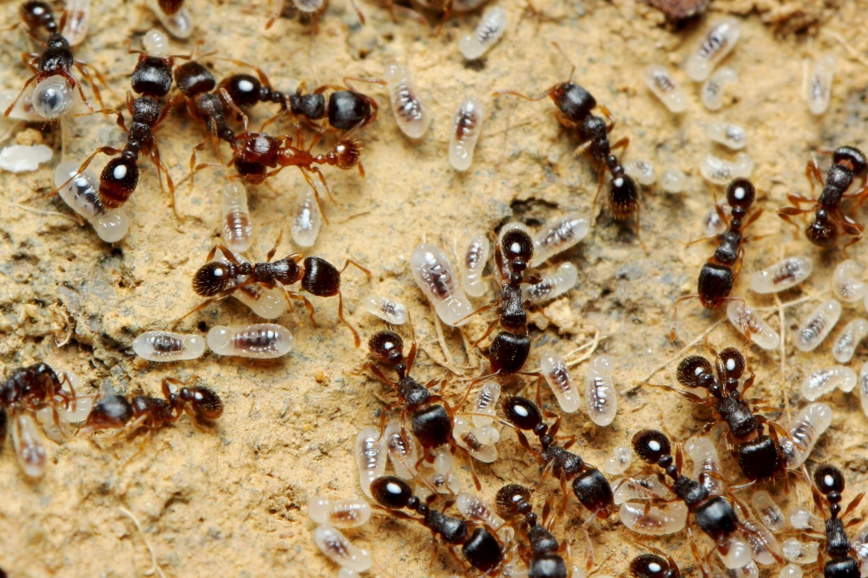 Die geringe Zahl an Strongylognathus-Arbeiterinnen ist auch der Grund, warum man die Nester der Art sehr schwer findet. Bei einem Unter-Steinnest mit zahllosen Tetramorium-Arbeiterinnen sieht man meist nur wenige sozialparasitische Ameisen - und da muss man schon sehr genau schauen, dass man sie nicht übersieht.