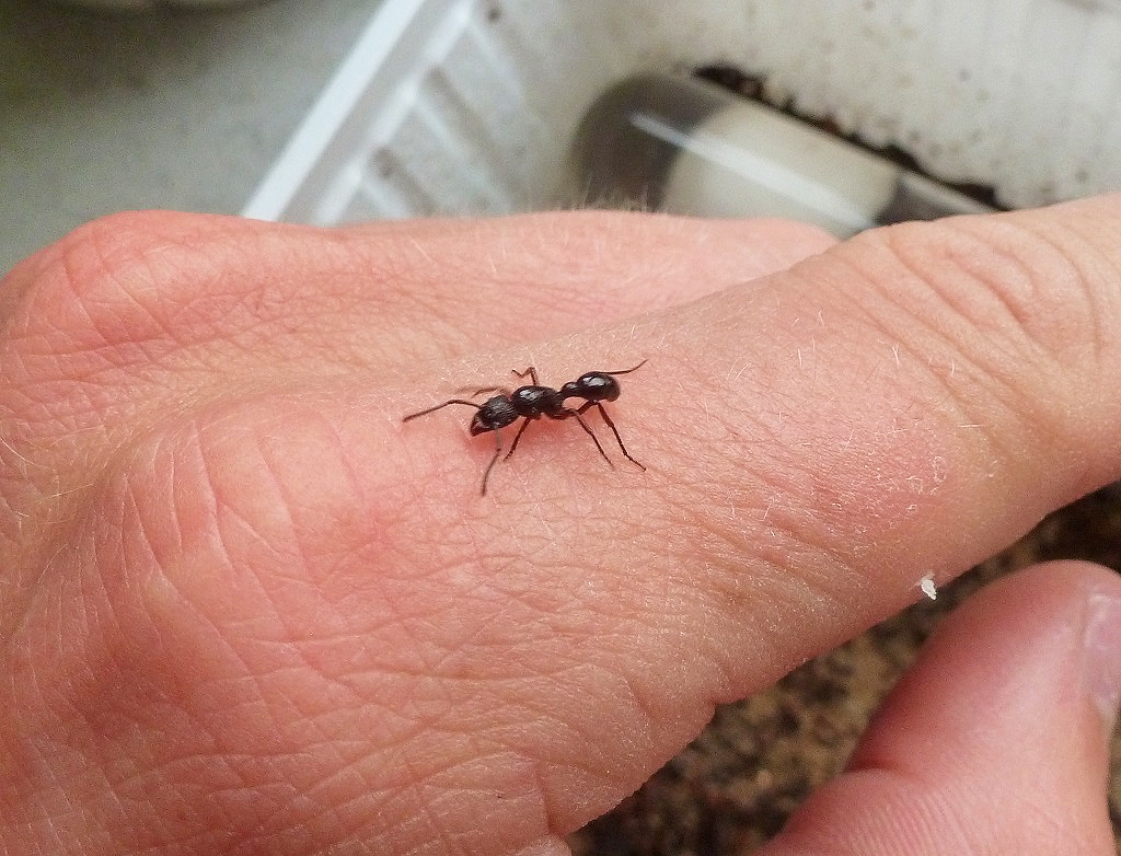 Ich habe leider kaum die Zeit, mich wirklich gut um sie zu kümmern, daher gebe ich sie lieber ab. Brut ist vorhanden, viele Eier und einige Larven, alle bisher vorhanden gewesenen Puppen sind inzwischen geschlüpft. Es sind derzeit circa 20-25 Arbeiterinnen. Hier ein paar Fotos der Ameisen: