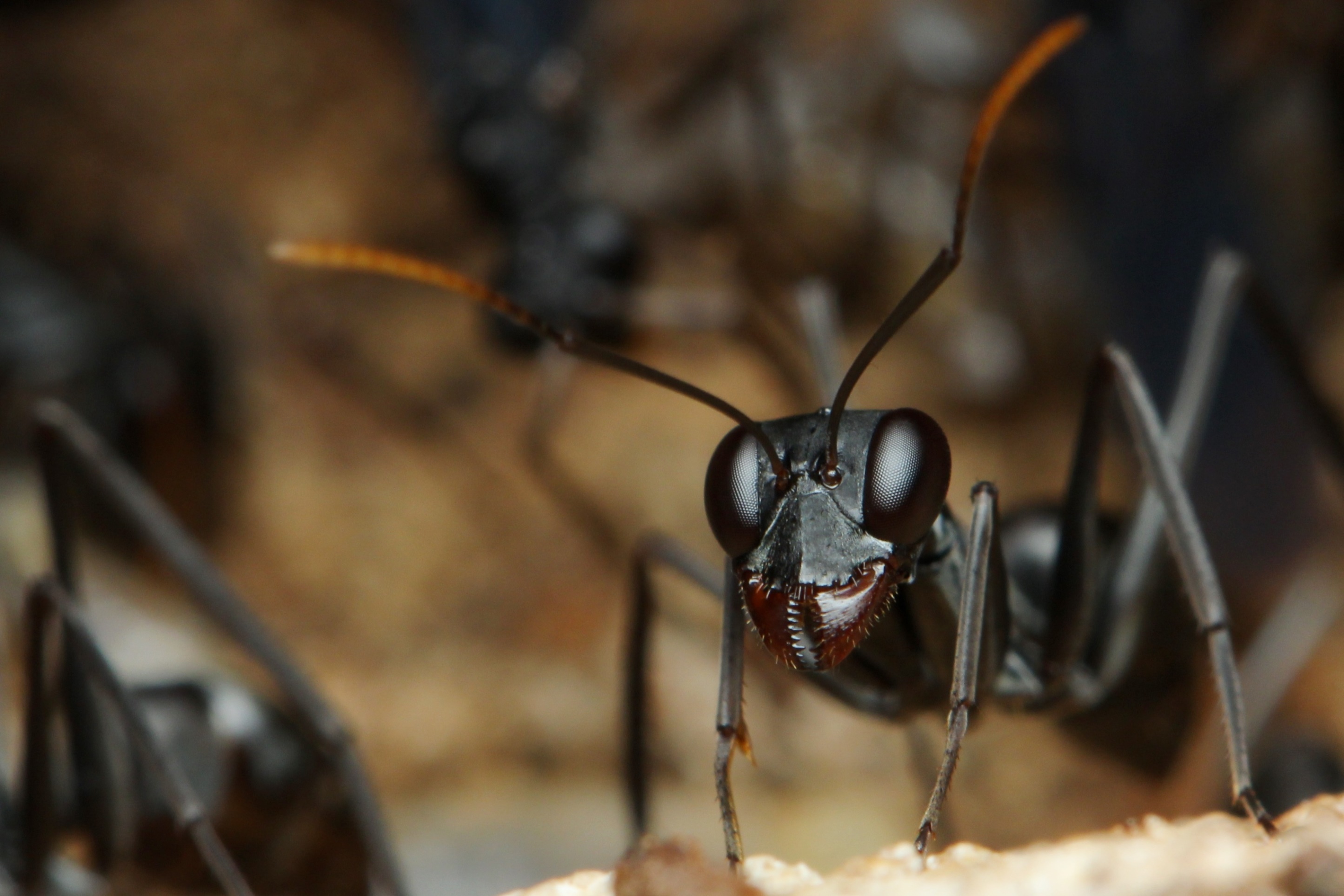 Lt. Alex Wild ist Gigantiops destructor die Ameisenart mit den größten Augen. Tatsächlich erkennt man sofort, dass die Größe der Augen mit jenen v. Wespen und Bienen etwa vergleichbar ist. Daraus folgt die berechtigte Vermutung, dass sie im Reich der Ameisen über einen sehr guten Sehsinn verfügen müssten. Die Übersetzung des Namens bedeutet etwa "Großäugiger Zerstörer", was sie aber zerstören, wurde mir nicht klar. Ich hatte bisher nie außereuropäische Arten gehalten, aber ich bekam sie 2009 (wenn ich mich nicht irre) als Geschenk und habe sie dementsprechend wertschätzend behandelt.