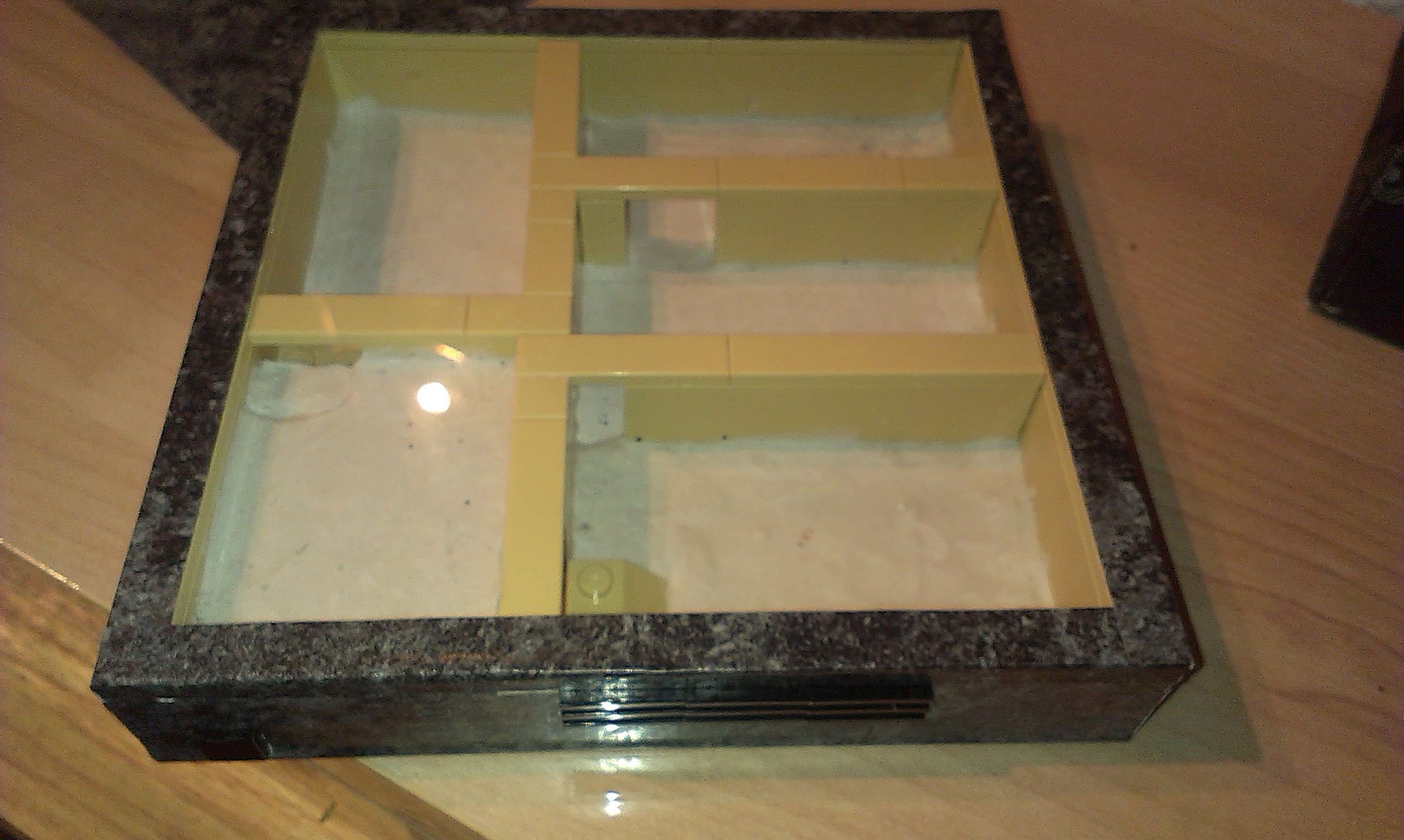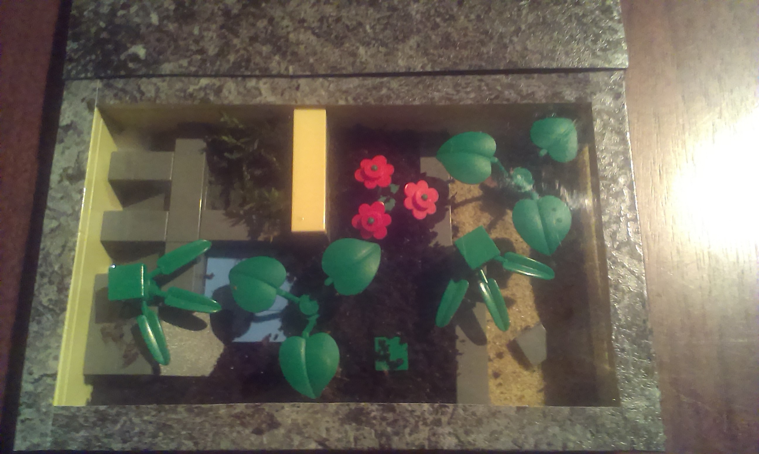 In dem Loch neben der Futterstation ( Die drei grauen Schrägsteine in der Arena ) kommt ein Minni-Teich an dem ich auch meinen ersten versuch mit echten Pflanzen bzw Moos starte :)