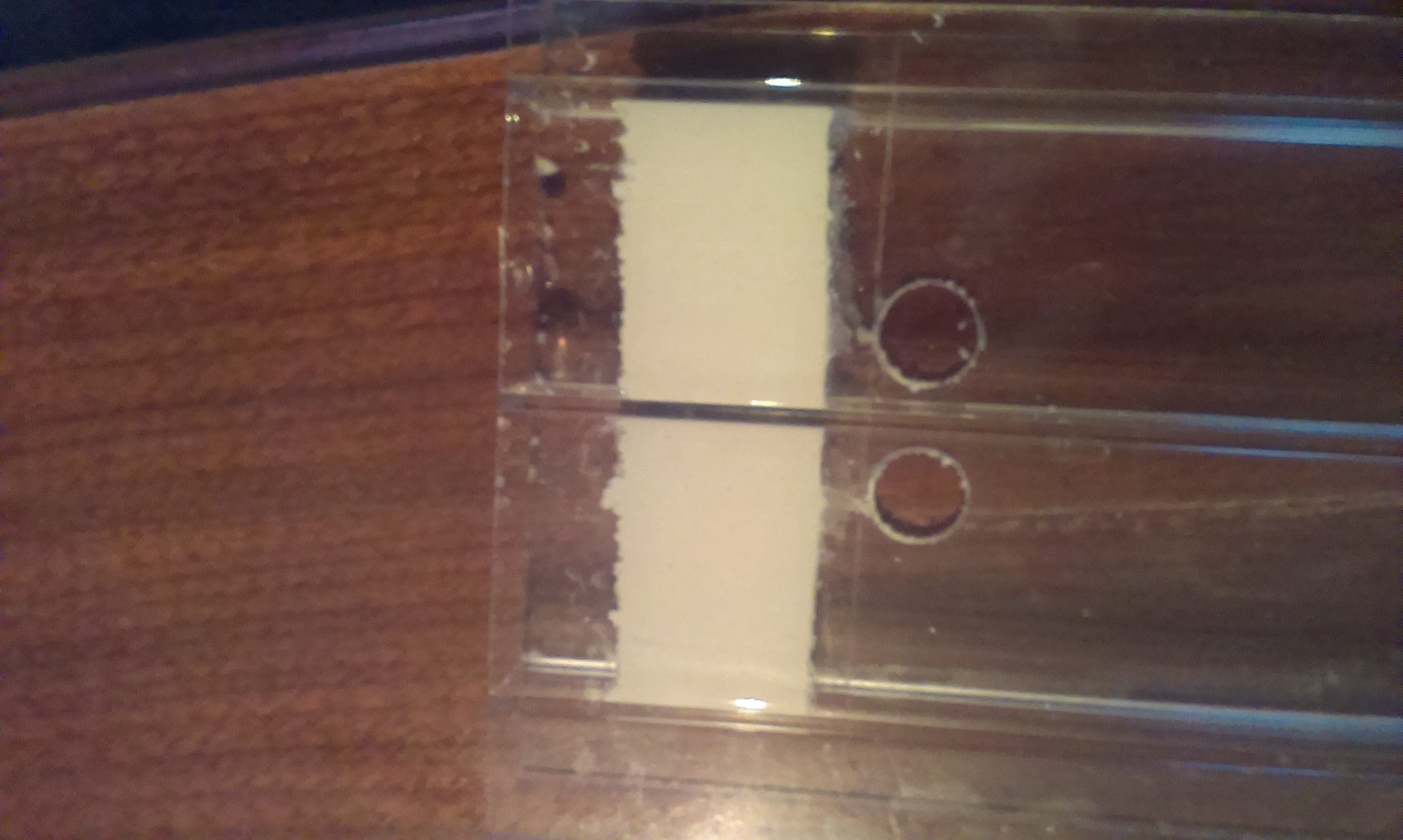 Als nächstes bohrte ich 4 Löcher in die Platte. Diese haben den gleichen Durchmesser wie die Reaktionsgefäße.