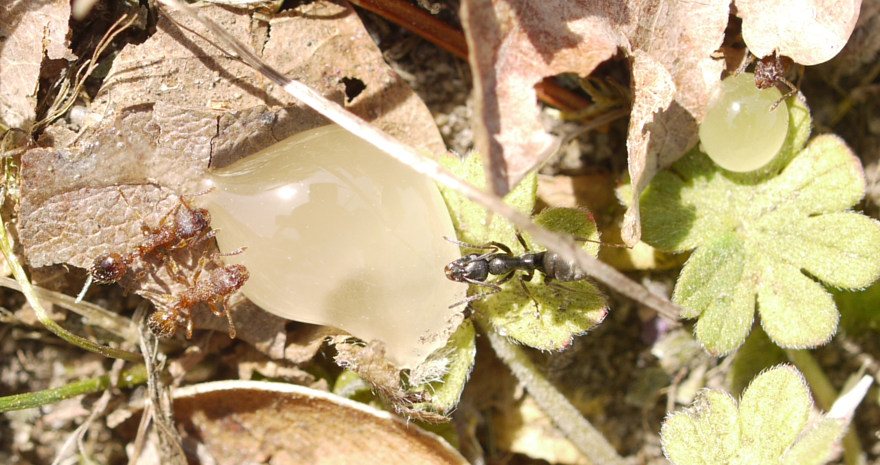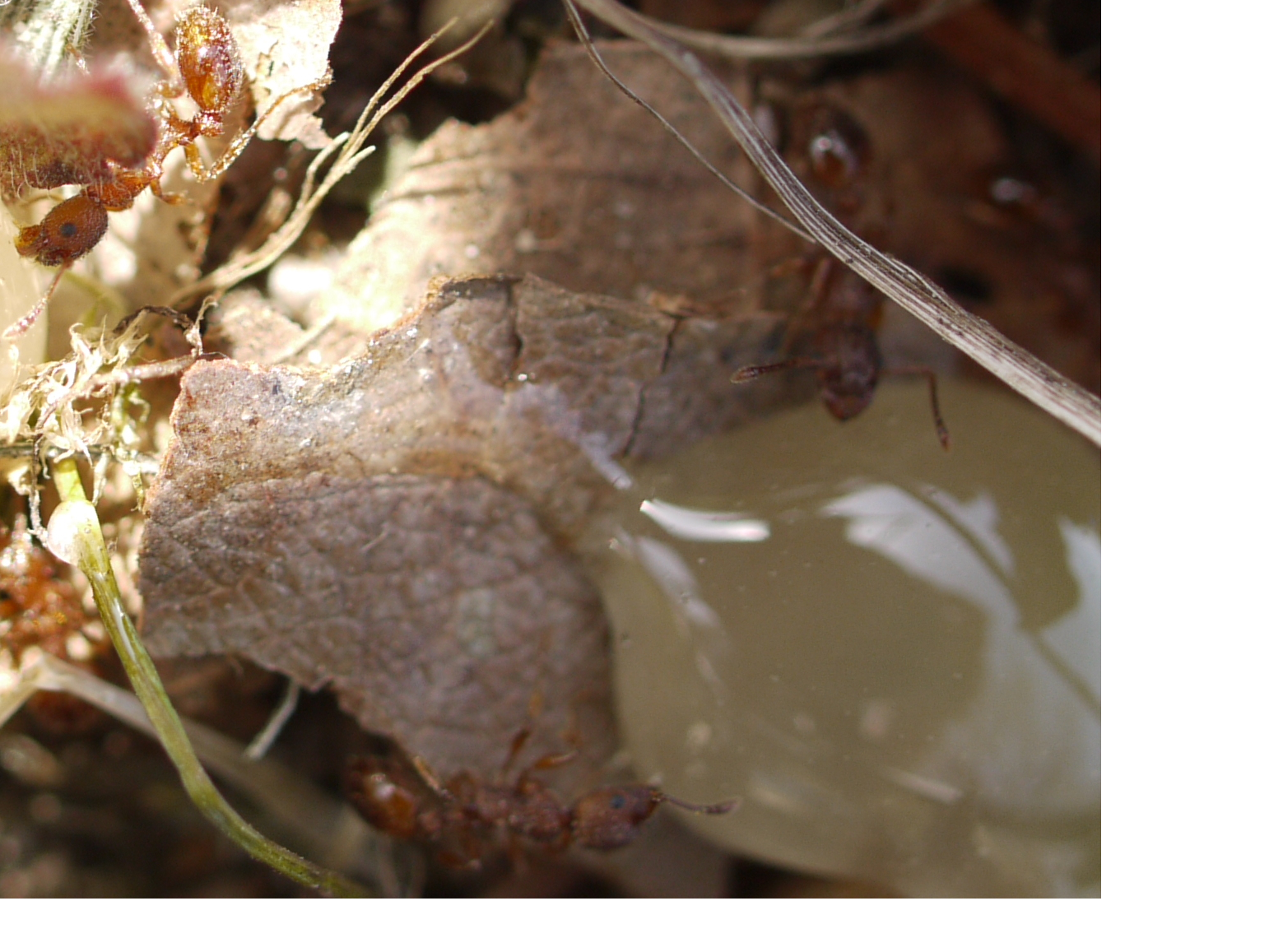 Bei mir in der Umgebung gibt es ein tolles Naturschutzgebiet mit einem angrenzenden Gutshof. Aus dem bewaldeten Naturschutzgebiet gibt es bisher wenig brauchbare Fotos, was sich dank Ringblitz eventuell bald ändert. Das sonnige Wetter und die angenehmen Temperaturen haben mich dazu bewogen, mit dem Equipment zu üben und statt Ringblitz lieber die Sonne zu benutzen. Eine kleine sehr sonnige Rasenfläche ist mir bereits letztes Jahr wegen einer großen Formica spec. aufgefallen, nach anfänglichem Zweifel fand ich diese Kolonie recht schnell wieder. Mit etwas Honig und Füßen die leider das Heim einer Myrmica spec. beschädigten ging ich ans Werk und kam zu folgenden Ergebnissen: