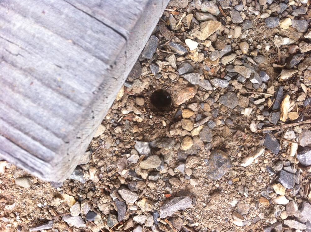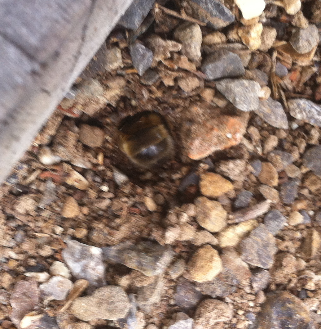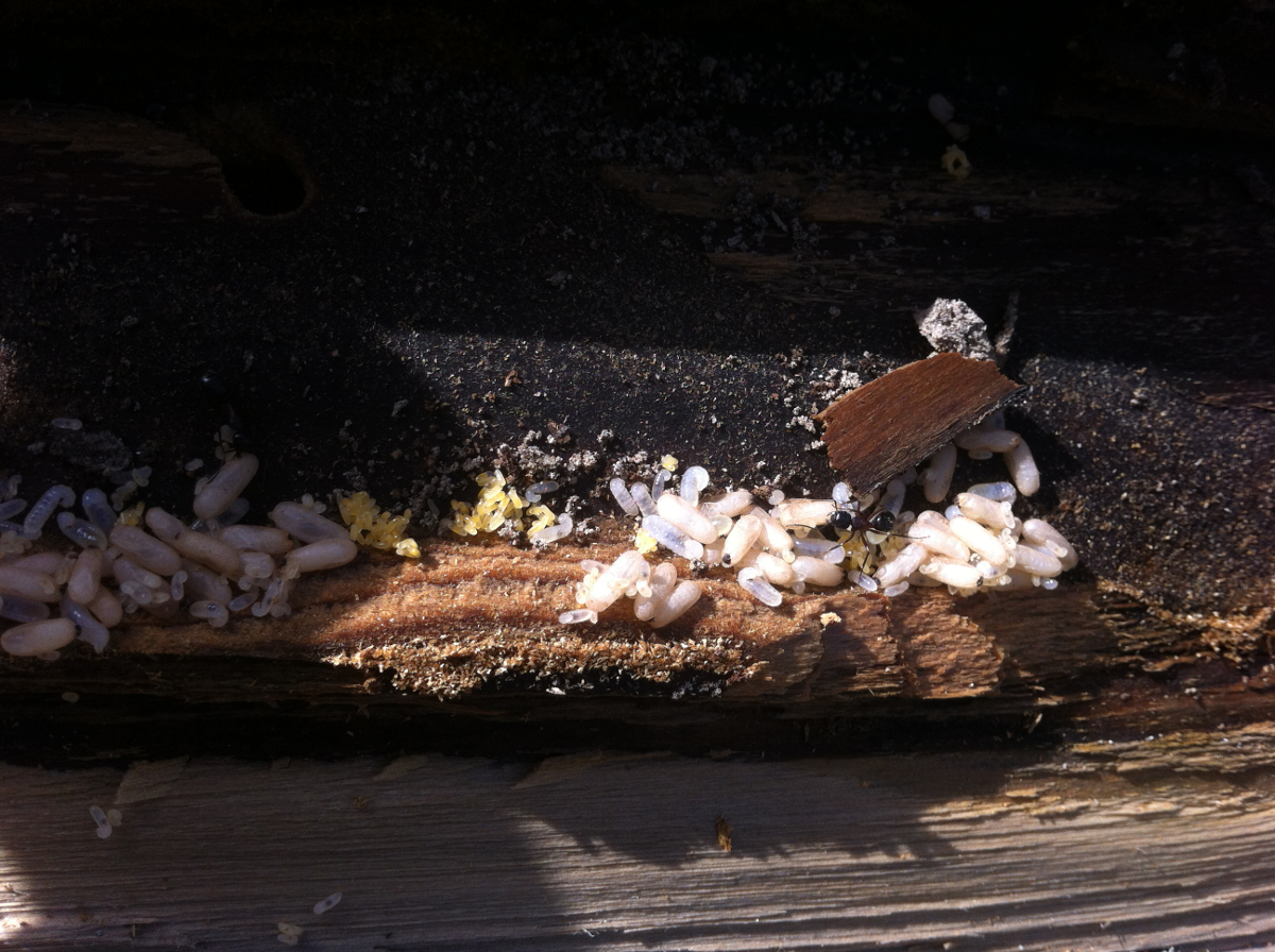 Edit: In diesem Schwemmholzstück hat sich eine grössere Kolonie Gebildet. Aufgefallen ist sie uns nur per Zufall, als sich ein Kollege am Holz zu schaffen machte spliterte eine Scheitchen ab und die Brut in den Äusseren Nestkammern kam zum Vorschein.