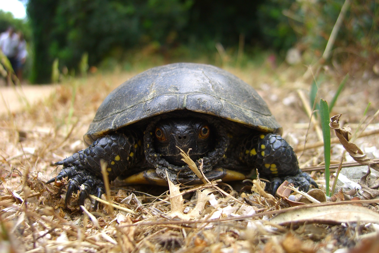 die Südeuropäische Sumpfschildkröte ist im Vergleich zu unserer einheimischen Europäischen Sumpfschildkröte in der Grundfärbung viel stärker gelb gesprenkelt, hat hellere Augen und ihre Größe ist geringer. Das deutlichste, äußere Unterscheidungsmerkmal ist die Farbe des Bauchpanzers. Bei der Südeuropäischen ist er leuchtend gelb und bei unserer Einheimischen schwarz.
